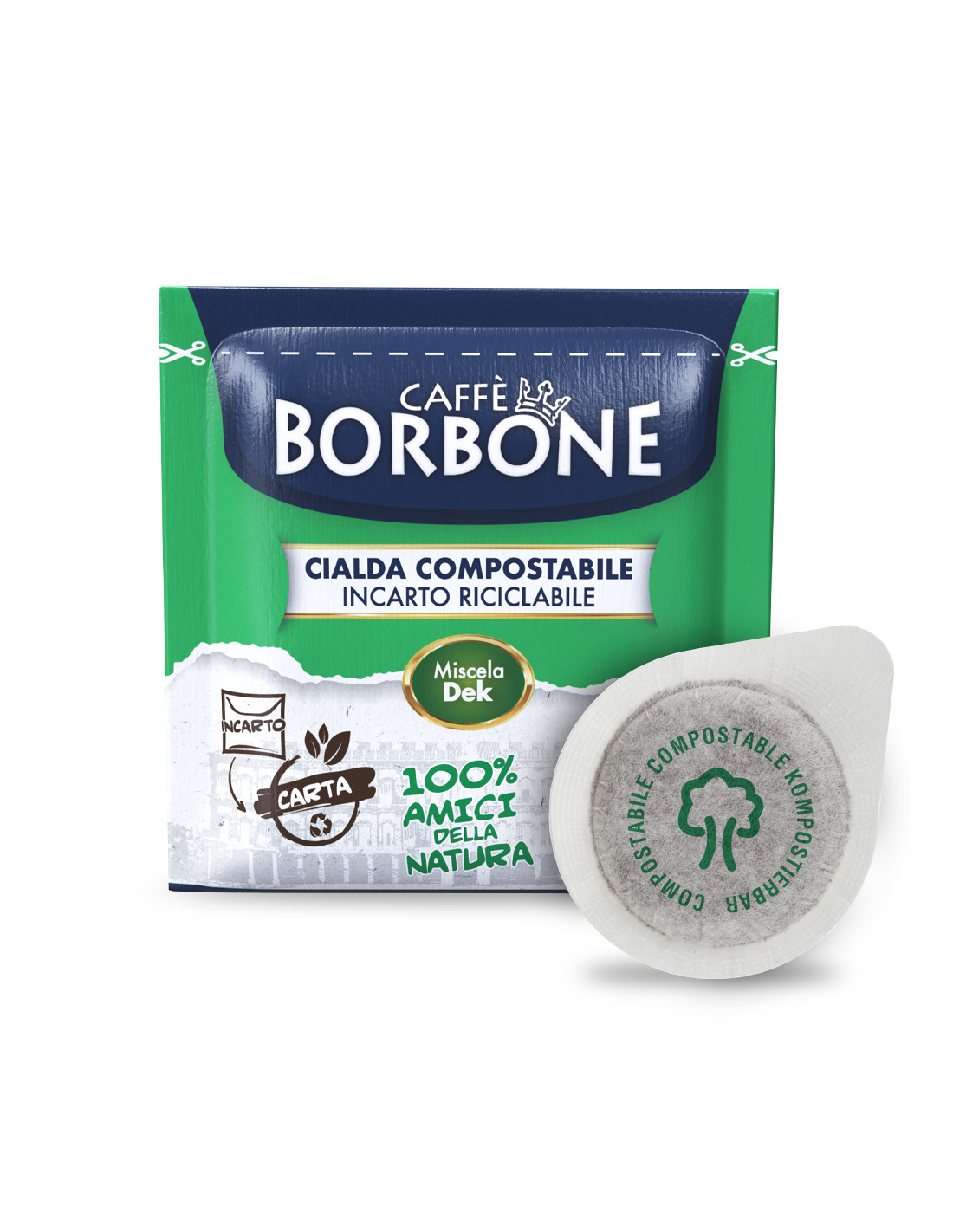 Caffè Borbone Cialda Miscela Decaffeinata - confezione da 50 pezzi. Tipo di prodotto: Cialde caffè, Tipologie di bevande: Espresso, Sistema caffè in capsule/cialde: Easy Serving Espresso pod (E.S.E.). Peso: 7,2 g. Quantità per pacco: 50 pz, Tipo di imballo: Scatola