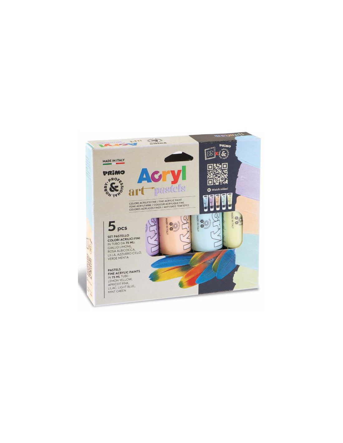 5 tubi colore acrilico fine 75ml colori pastello in scatola cartone