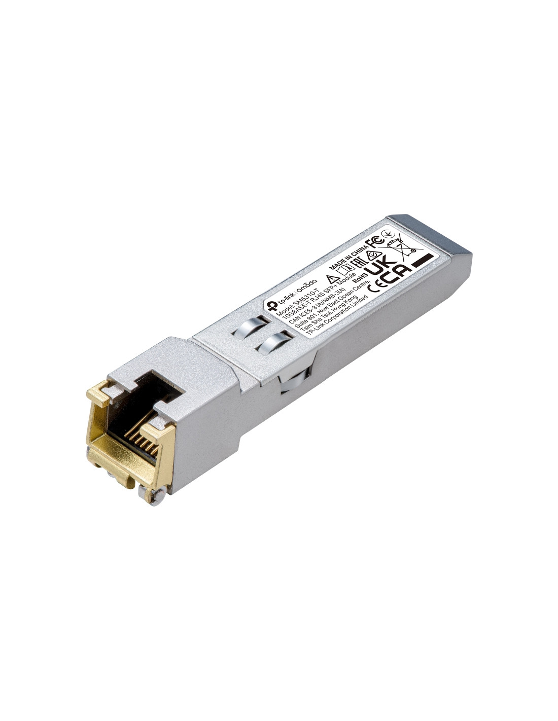 TP-Link Omada SM5310-T. Tipo di ricetrasmettitore SFP: Rame, Velocità massima di trasferimento dati: 10300 Mbit/s, Tipo interfaccia: RJ-45. Colore del prodotto: Argento, Materiale della scocca: Metallo, Fattore di forma: SFP+. Voltaggio di ingresso: 3.3 V. Certificati di conformità: CE, Federal Communications Commission (FCC), RoHS. Larghezza: 67,4 mm, Profondità: 13,8 mm, Altezza: 13,8 mm