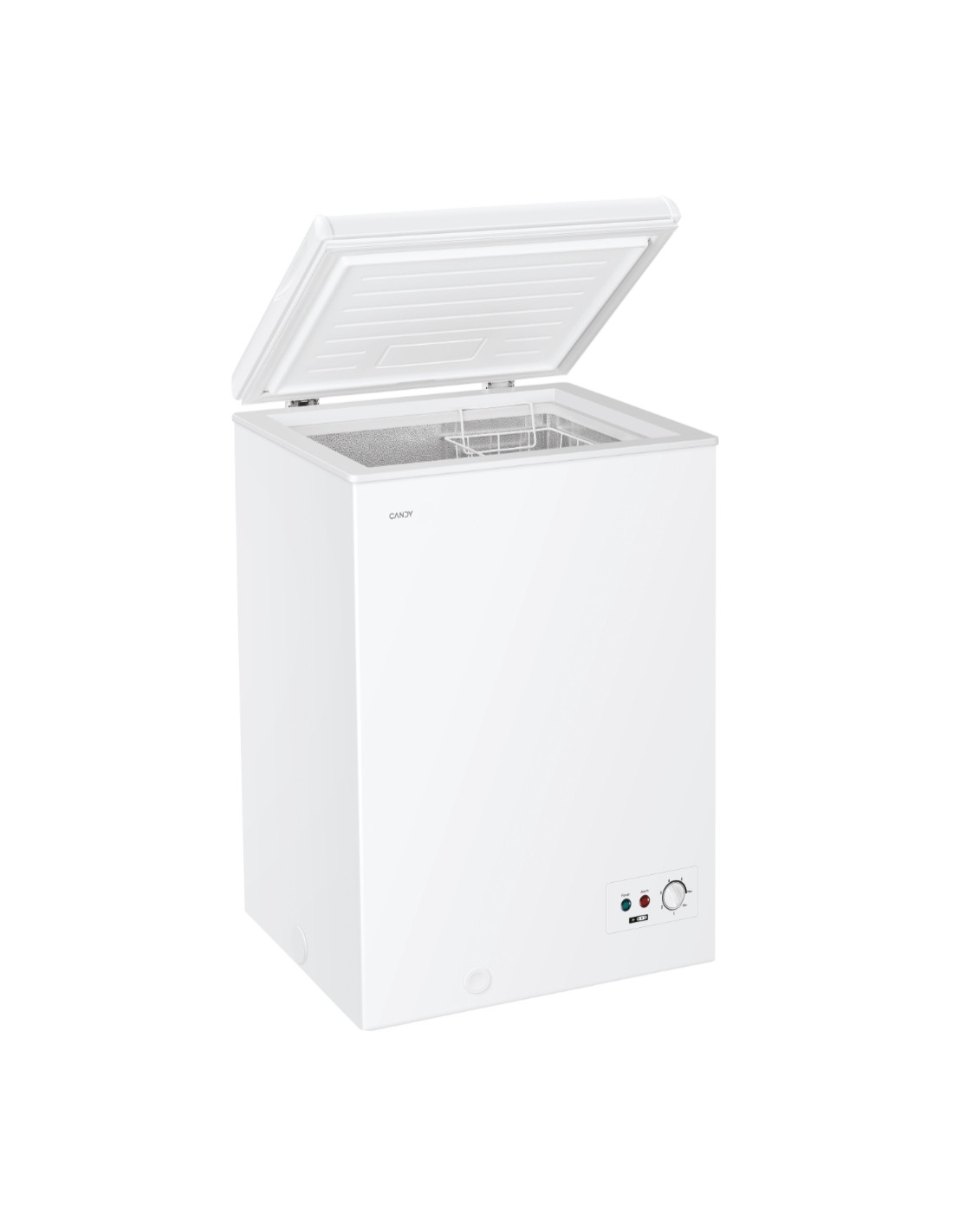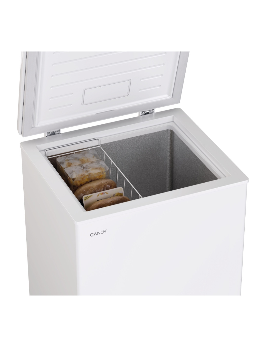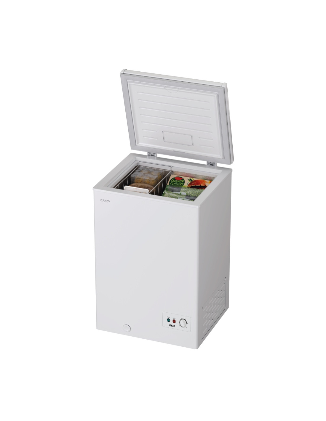 Candy CCHH 100E. Capacità netta congelatore: 97 L, Classe climatica: SN-T, Capacità di congelamento: 4,5 kg/24h, Autonomia senza energia elettrica: 13 h, Emissione acustica: 39 dB, Punteggio: 4*. Cerniera porta: Sinistra. Classe efficienza energetica: E, Consumo energetico annuo: 168 kWh. Colore del prodotto: Bianco