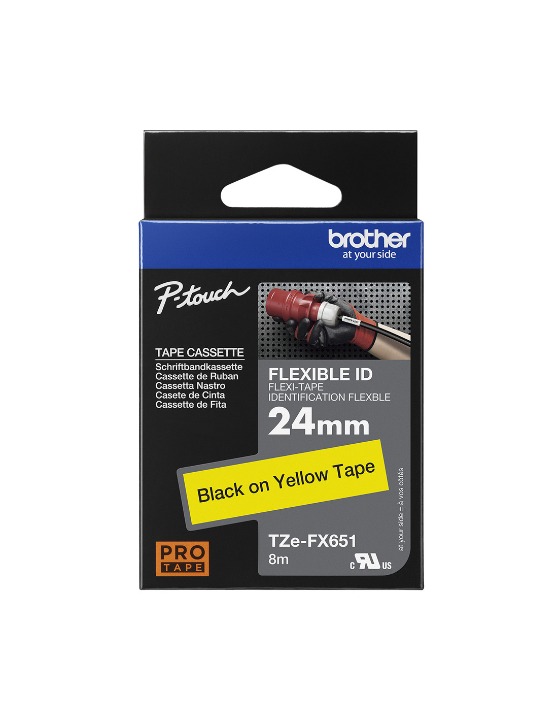 Progettata per l’identificazione di cavi e fibre, questa cassetta nastro per etichettatura nero su giallo Brother TZe-FX651 da 24 mm è stata dotata di uno speciale adesivo che consente di avvolgere ripetutamente l’etichetta intorno a un cavo o attaccarla come una bandierina.