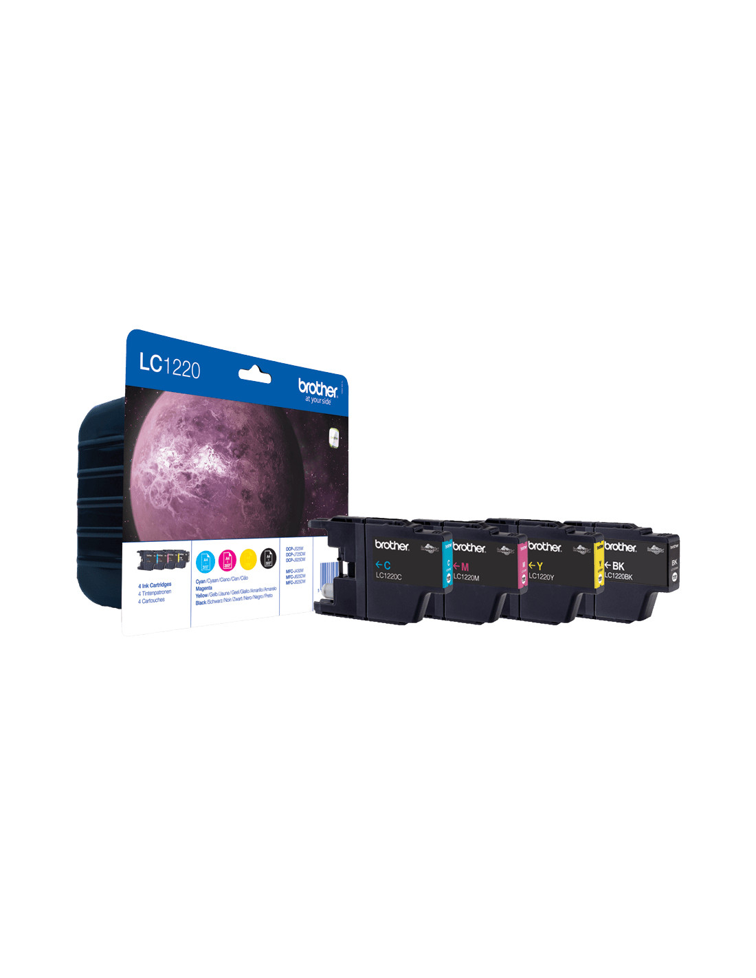 Assicurati che la sostituzione delle cartucce originali d’inchiostro Brother sia più semplice e conveniente possibile acquistando questa confezione multipla LC1220VALBP. La confezione contiene cartucce LC1220 d’inchiostro nero, ciano, giallo e magenta, tutte progettate per aiutarti a ottenere il meglio dalla tua stampante Brother.