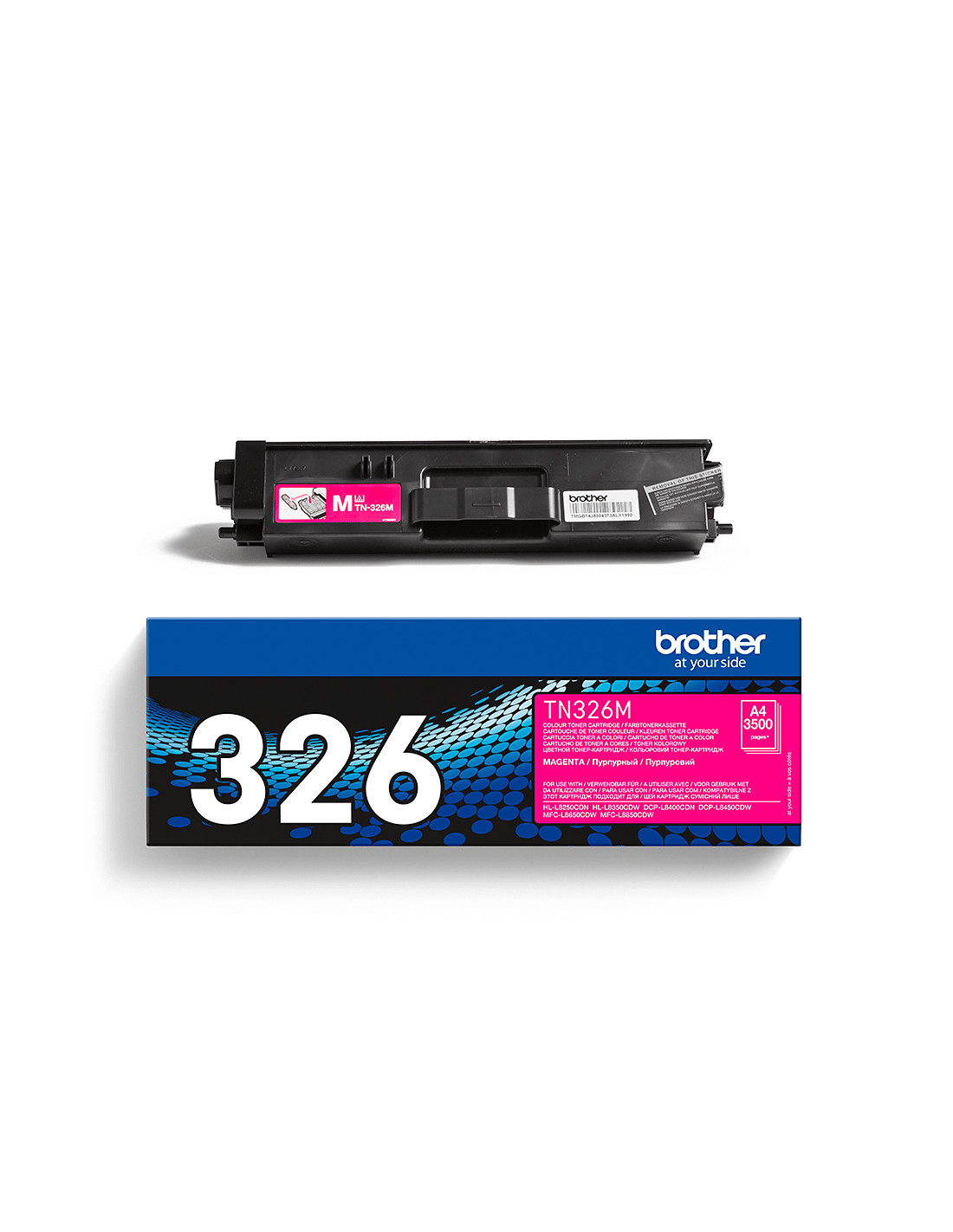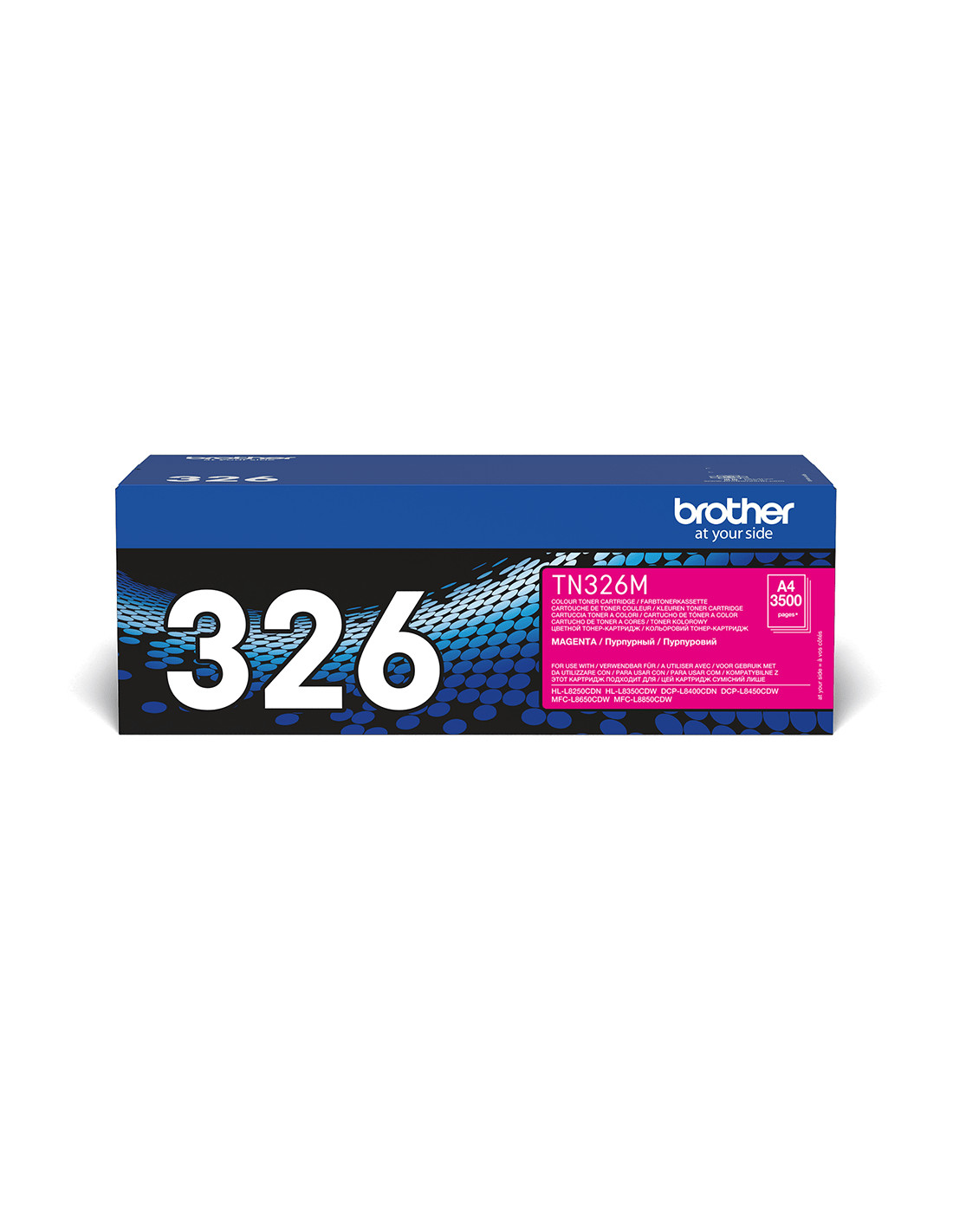 Il toner magenta ad alta capacità TN-326M è utilizzabile con DCP-L8400CDN, DCP-L8450CDW, HL-L8250CDN, HL-L8350CDW, MFC-L8650CDW e MFC-L8850CDW, con una capacità massima di 3.500 pagine. I toner Brother sono studiati per funzionare perfettamente con le nostre stampanti e i nostri multifunzione, per ottenere ottimi risultati e la massima convenienza.