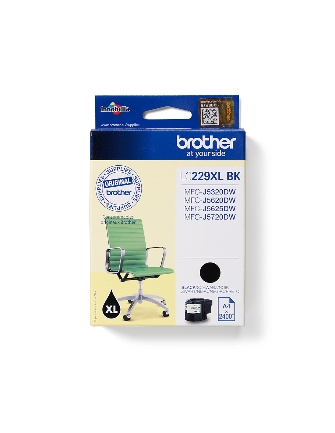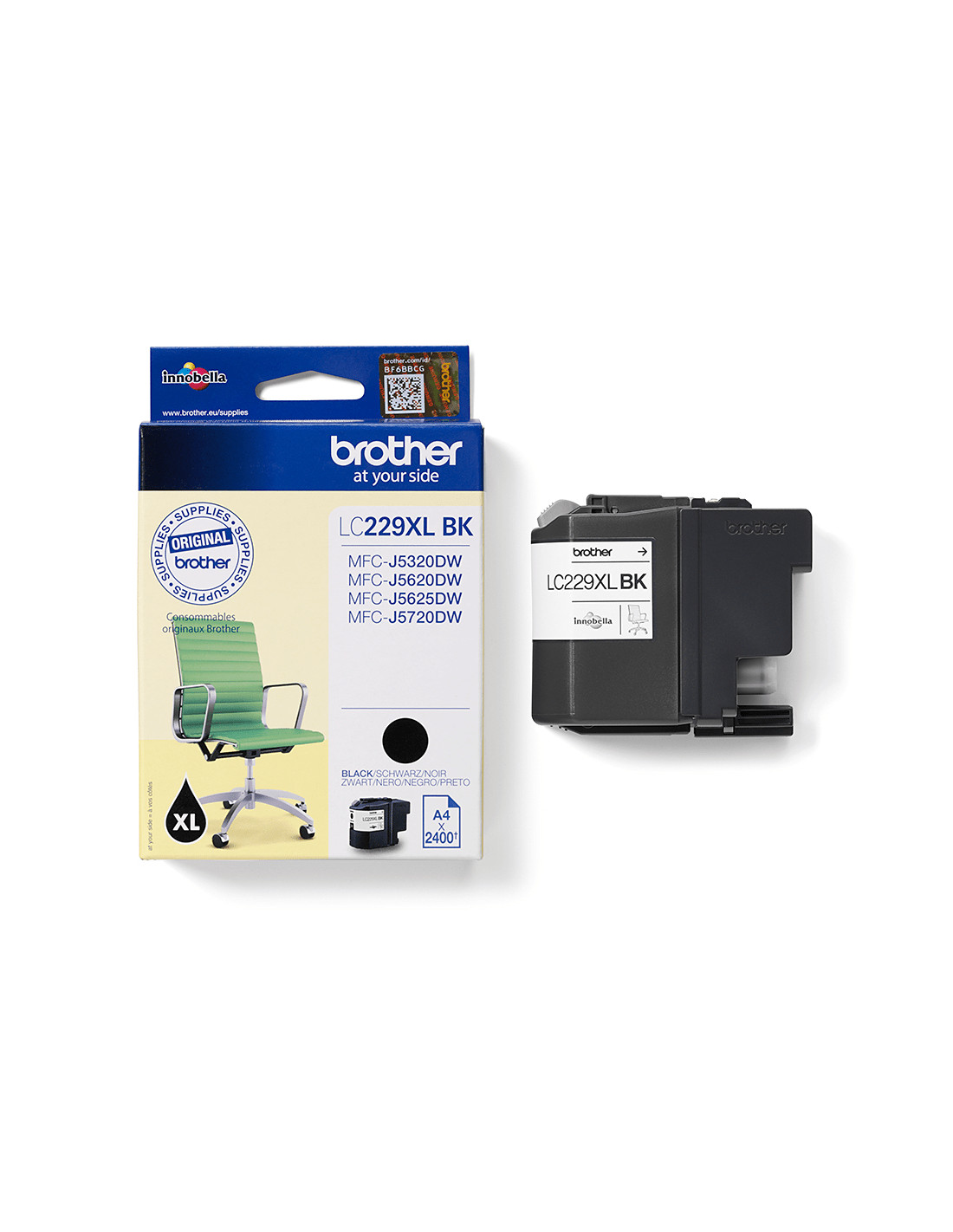 La cartuccia originale a getto di inchiostro Brother LC229XLBK è utilizzabile con MFC-J5320DW, MFC-J5620DW e MFC-J5720DW.