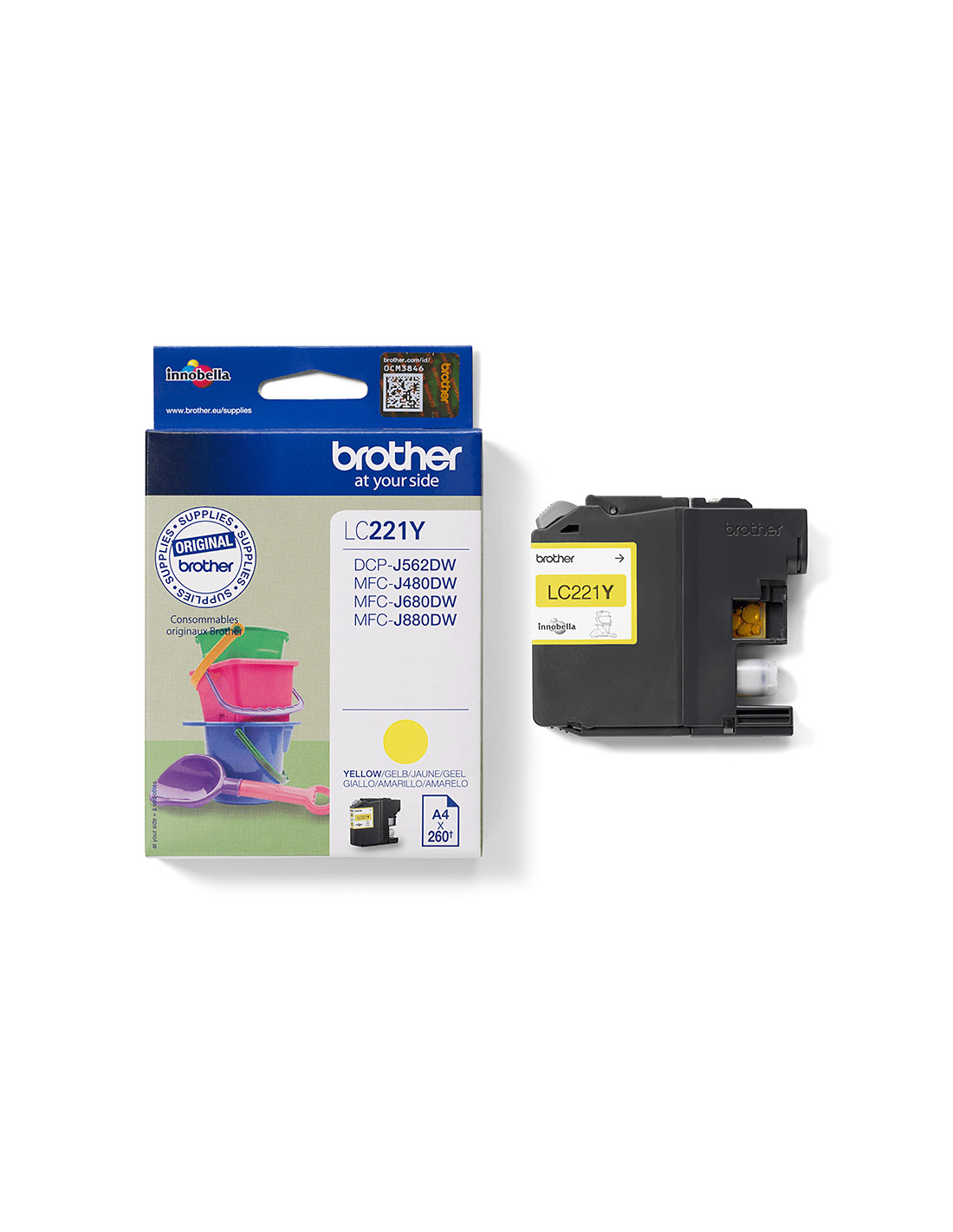 Questa cartuccia d’inchiostro giallo originale Brother LC221Y è stata sviluppata appositamente per garantire documenti di qualità a ogni stampa. Grazie alle proprietà resistenti allo scolorimento, otterrai colori nitidi e vivaci che durano nel tempo. Acquistando le nostre cartucce, proteggi la stampante da potenziali danni a lungo termine causati dall’utilizzo di prodotti non originali. Disponibile per DCP-J562DW, MFC-J480DW, MFC-J680DW e MFC-J880DW.