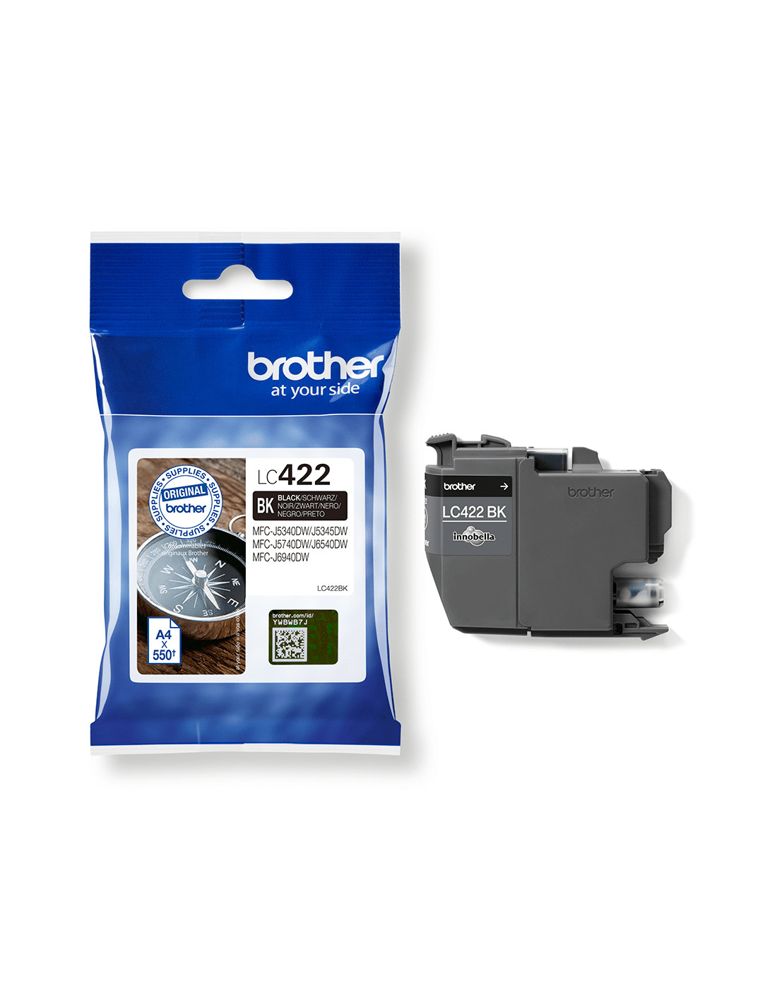 La cartuccia d'inchiostro nero Brother LC422BK, con proprietà di resistenza allo sbiadimento dei colori, garantisce stampe fluide, affidabili e di alta qualità dalla prima all'ultima stampa. I nostri inchiostri perfettamente bilanciati garantiscono alla tua stampante un funzionamento ottimale. Brother prende in considerazione l'impatto ambientale in ogni fase del ciclo di vita della cartuccia di inchiostro, riducendo la quantità di rifiuti conferiti in discarica. Tutto il nostro hardware e le nostre cartucce d'inchiostro sono realizzati in modo che abbiano il minor impatto possibile sull'ambiente. Cartuccia d'inchiostro originale Brother LC422BK: vale sempre la pena di usarla.