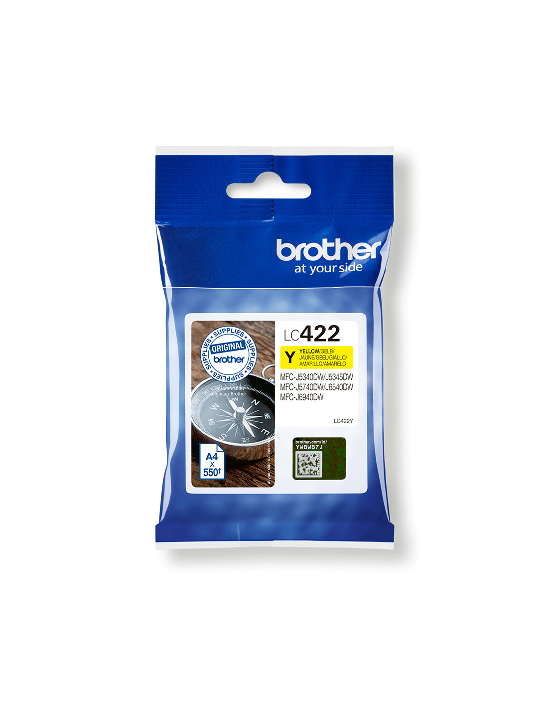 La cartuccia d'inchiostro giallo Brother LC422Y, con proprietà di resistenza allo sbiadimento dei colori, garantisce stampe fluide, affidabili e di alta qualità dalla prima all'ultima stampa. I nostri inchiostri perfettamente bilanciati garantiscono alla tua stampante un funzionamento ottimale. Brother prende in considerazione l'impatto ambientale in ogni fase del ciclo di vita della cartuccia di inchiostro, riducendo la quantità di rifiuti conferiti in discarica. Tutto il nostro hardware e le nostre cartucce d'inchiostro sono realizzati in modo che abbiano il minor impatto possibile sull'ambiente. Cartuccia d'inchiostro originale Brother LC422Y: vale sempre la pena di usarla.