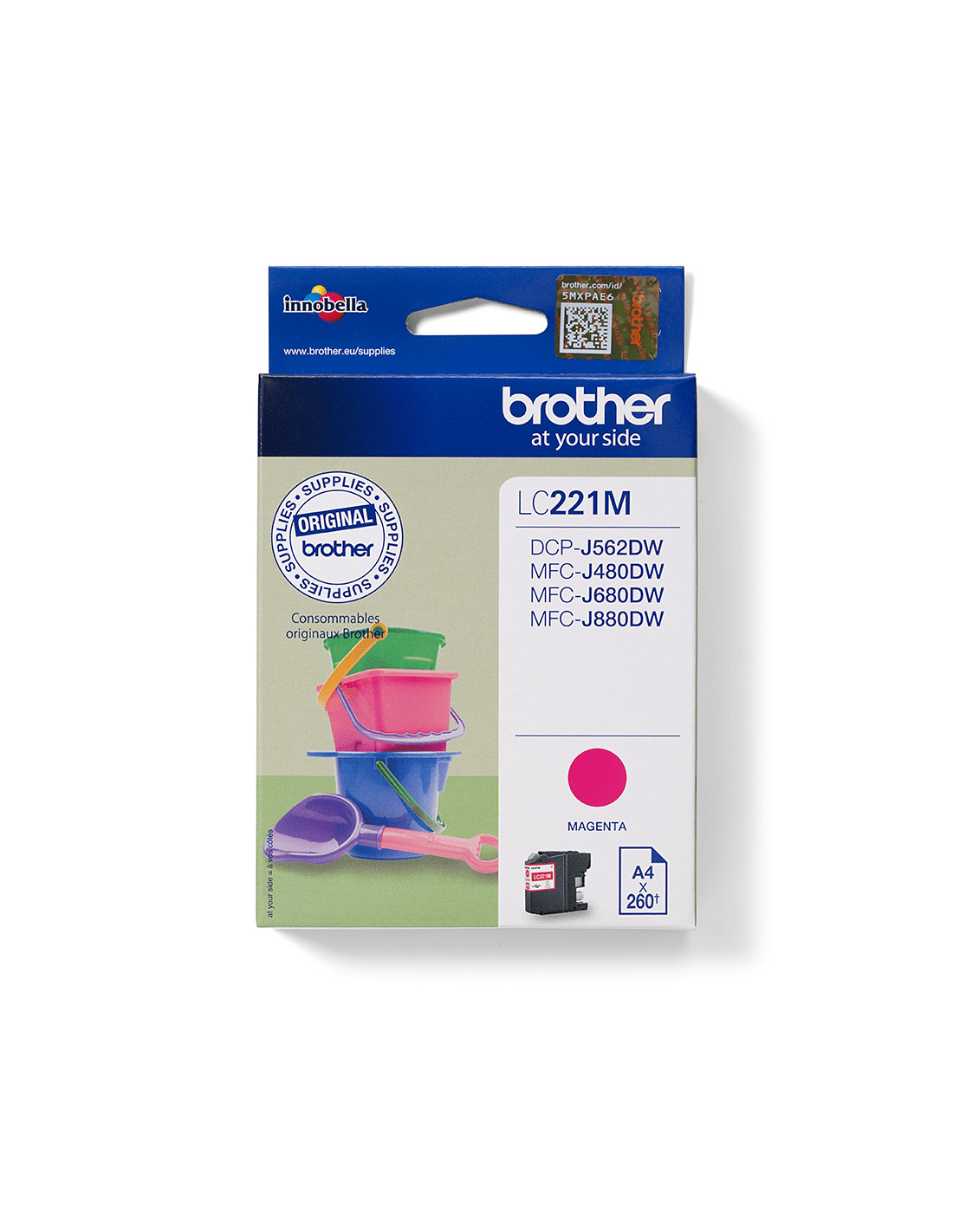 Questa cartuccia d’inchiostro magenta originale Brother LC221M è stata sviluppata appositamente per garantire documenti di qualità a ogni stampa. Grazie alle proprietà resistenti allo scolorimento, otterrai colori nitidi e vivaci che durano nel tempo. Acquistando le nostre cartucce, proteggi la stampante da potenziali danni a lungo termine causati dall’utilizzo di prodotti non originali. Disponibile per DCP-J562DW, MFC-J480DW, MFC-J680DW e MFC-J880DW.