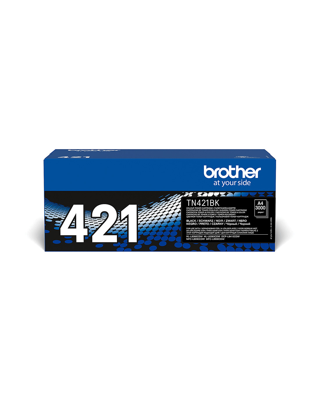 5 validi motivi per scegliere l’originale. 1. Garantire elevate prestazioni Dispositivo e materiale di consumo originali sono progettati per lavorare in perfetta sinergia: per fare in modo che ogni stampa sia perfetta, la prima quanto l’ultima 2. Qualità della stampa La tecnologia a cera dei toner consente la produzione di stampa di qualità professionale 3. Durabilità della stampa fino a 4 volte in più* Dai test effettuati è risultato che i documenti stampati utilizzando materiale di consumo originale durano 4 volte di più* rispetto all’utilizzo di materiale compatibile *di altre polveri - test effettuati nei laboratori Brother 4. Risparmio di tempo e denaro L’utilizzo di materiale non originale può causare danni dovuti alla fuoriuscita di polvere di toner, e causare la perdita della garanzia del produttore 5. Minor impatto ambientale La conformità alle normative ambientali europee garantisce un minor impatto ambientale dei nostri materiali di consumo Per scoprire altri vantaggi clicca qui. Progettato per garantire la massima affidabilità, il toner nero originale Brother TN-421BK è stato sviluppato per creare documenti ad alta risoluzione, dalla prima all'ultima stampa.