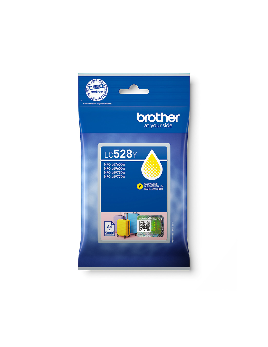 Brother LC528Y. Tipo di fornitura: Confezione singola, Resa in pagine dell'inchiostro a colori: 5000 pagine, Colori di stampa: Giallo, Quantità per pacco: 1 pz