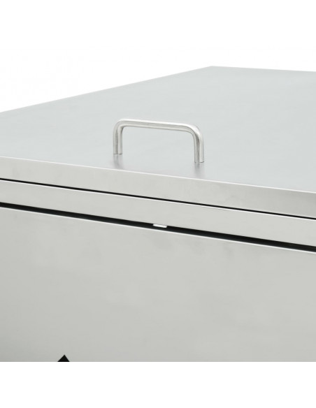 Realizzato in acciaio inossidabile, il copribidone è estremamente resistente agli agenti atmosferici e durevole. In particolare, gli utili fori di ventilazione consentono la circolazione dell'aria e prevengono il ristagno di odori puzzolenti, mentre il sistema di chiusura garantisce l'immagazzinamento sicuro dei rifiuti. È dotato di una pratica porta che consente di inserire e rimuovere facilmente il bidone.