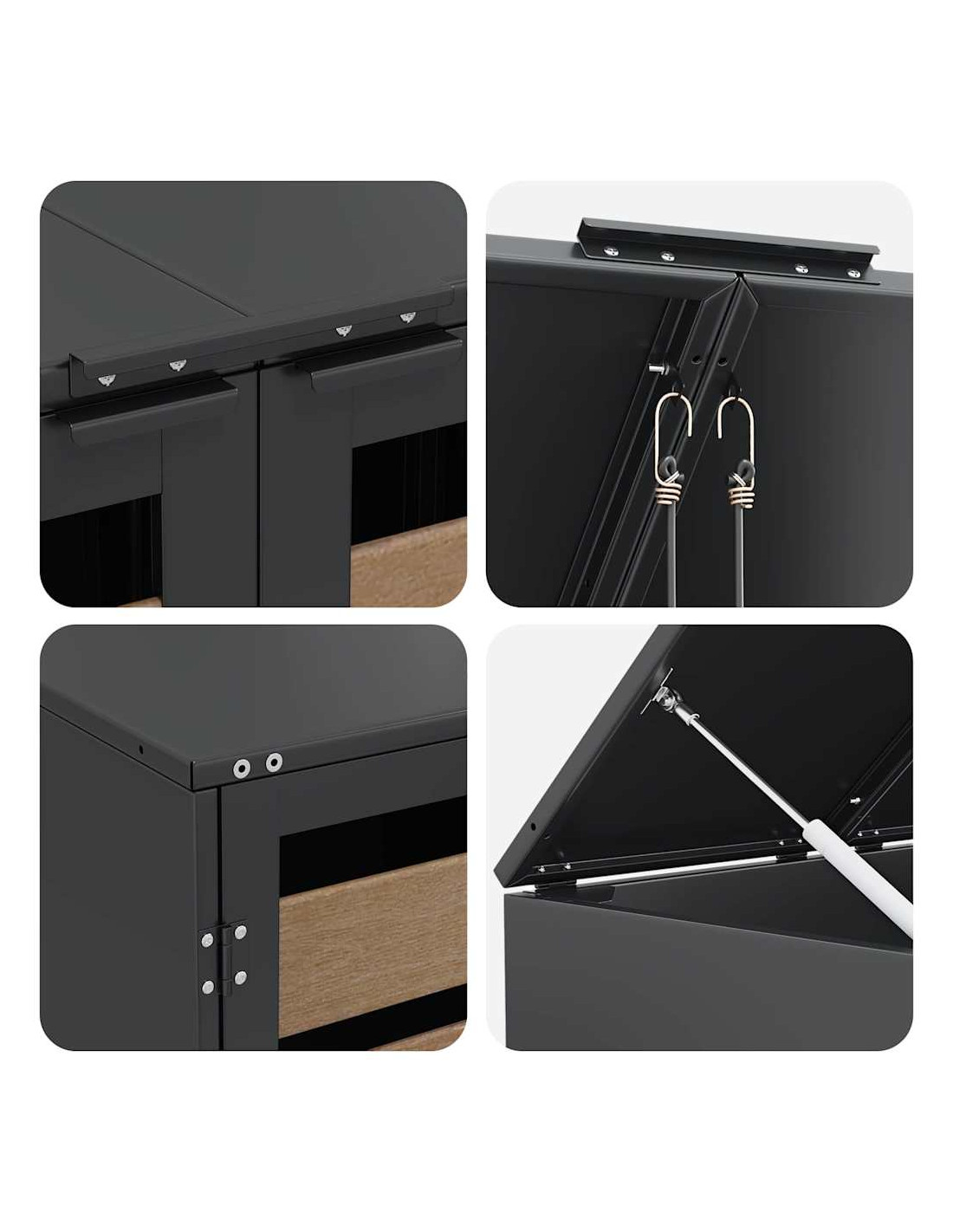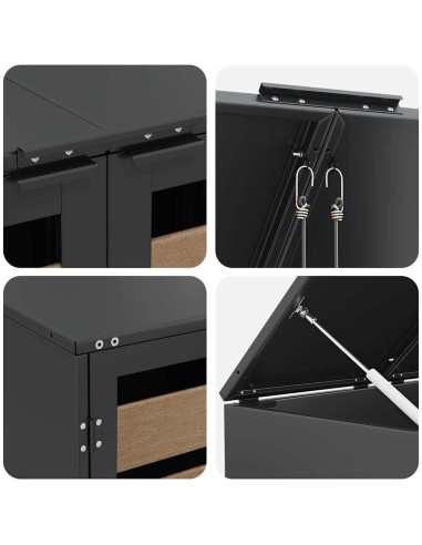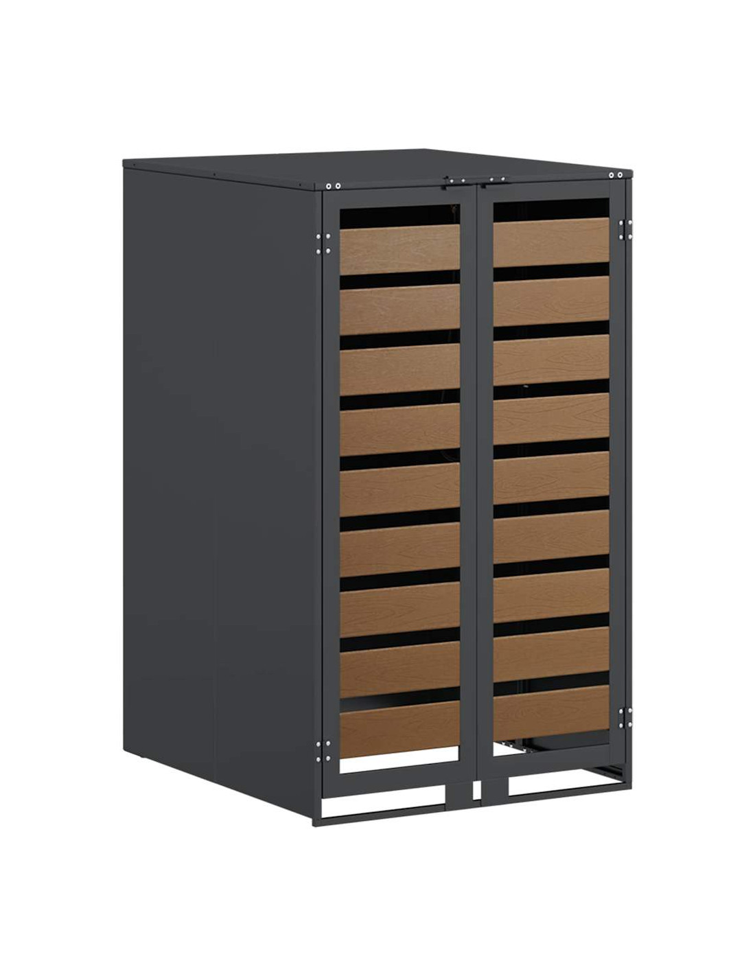 Questo ripostiglio per bidoni è una soluzione elegante per tenere ordinati i contenitori per i rifiuti all'aperto, mantenendo l'aspetto del giardino o della terrazza attraente. Il design moderno si integra bene con diversi ambienti esterni, combinando funzionalità e un bel look. Progettato per l'esterno, regge bene alle condizioni meteo, assicurando longevità e aiutando a mantenere tutto in ordine. Perfetto per chi ama l'organizzazione e la pulizia all'aperto, unisce utilità e stile.