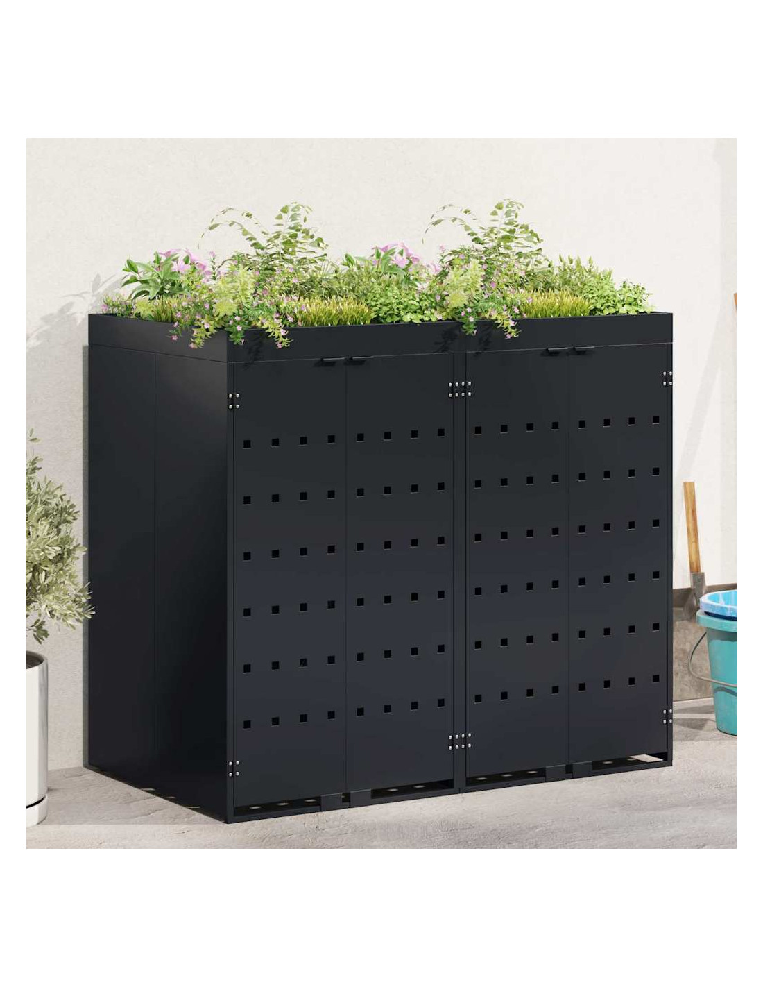 Questo contenitore per rifiuti con tetto da giardino è una soluzione chic per mantenere in ordine l'area esterna. È progettato per adattarsi bene a giardini e terrazze. Con il suo design minimale e linee pulite, si integra facilmente in ogni ambiente moderno. Nasconde i bidoni in modo elegante e permette di coltivare piante o erbe, portando un po'di natura nel tuo spazio.