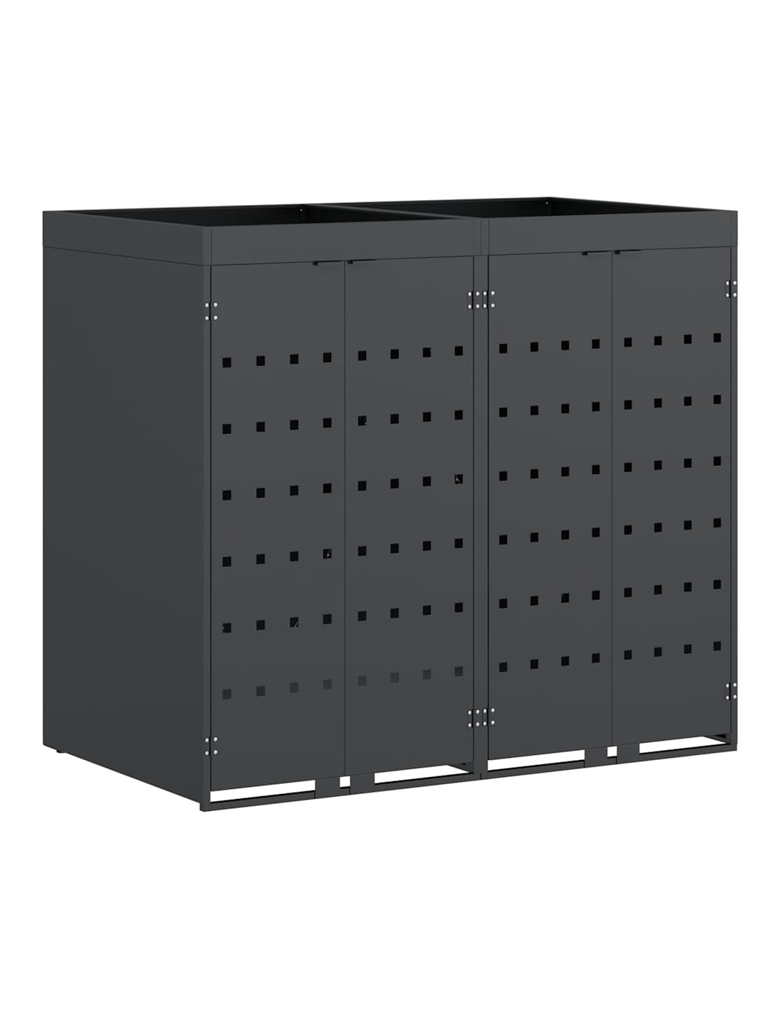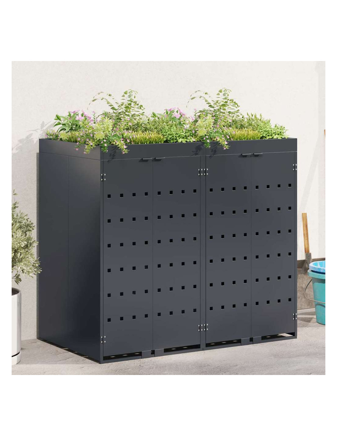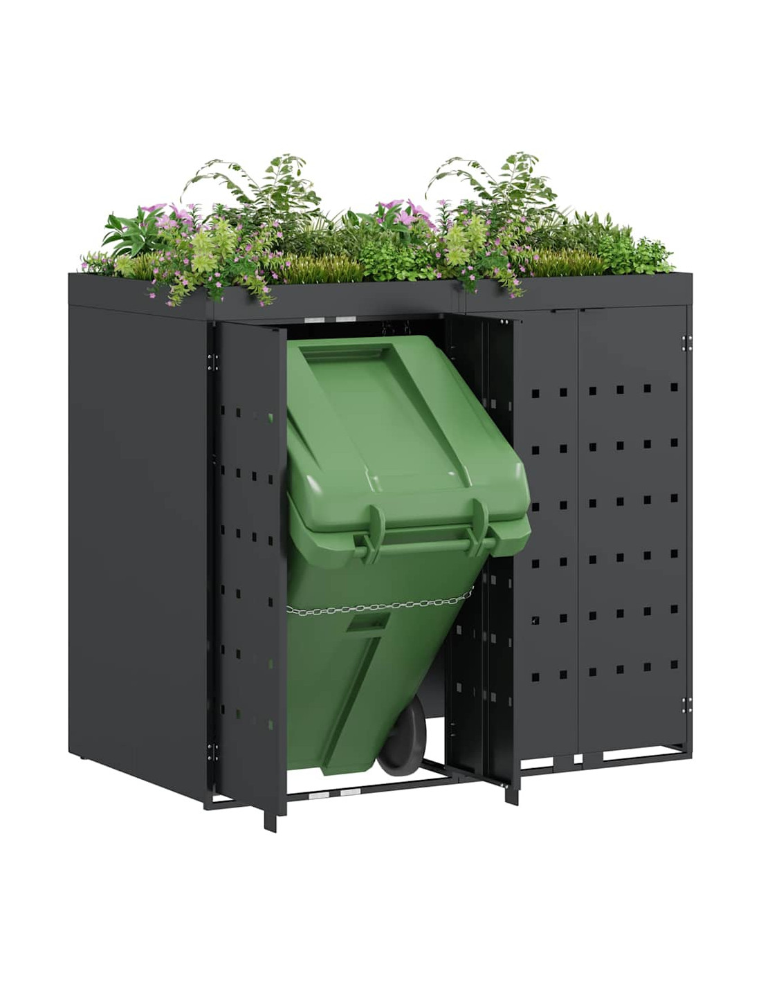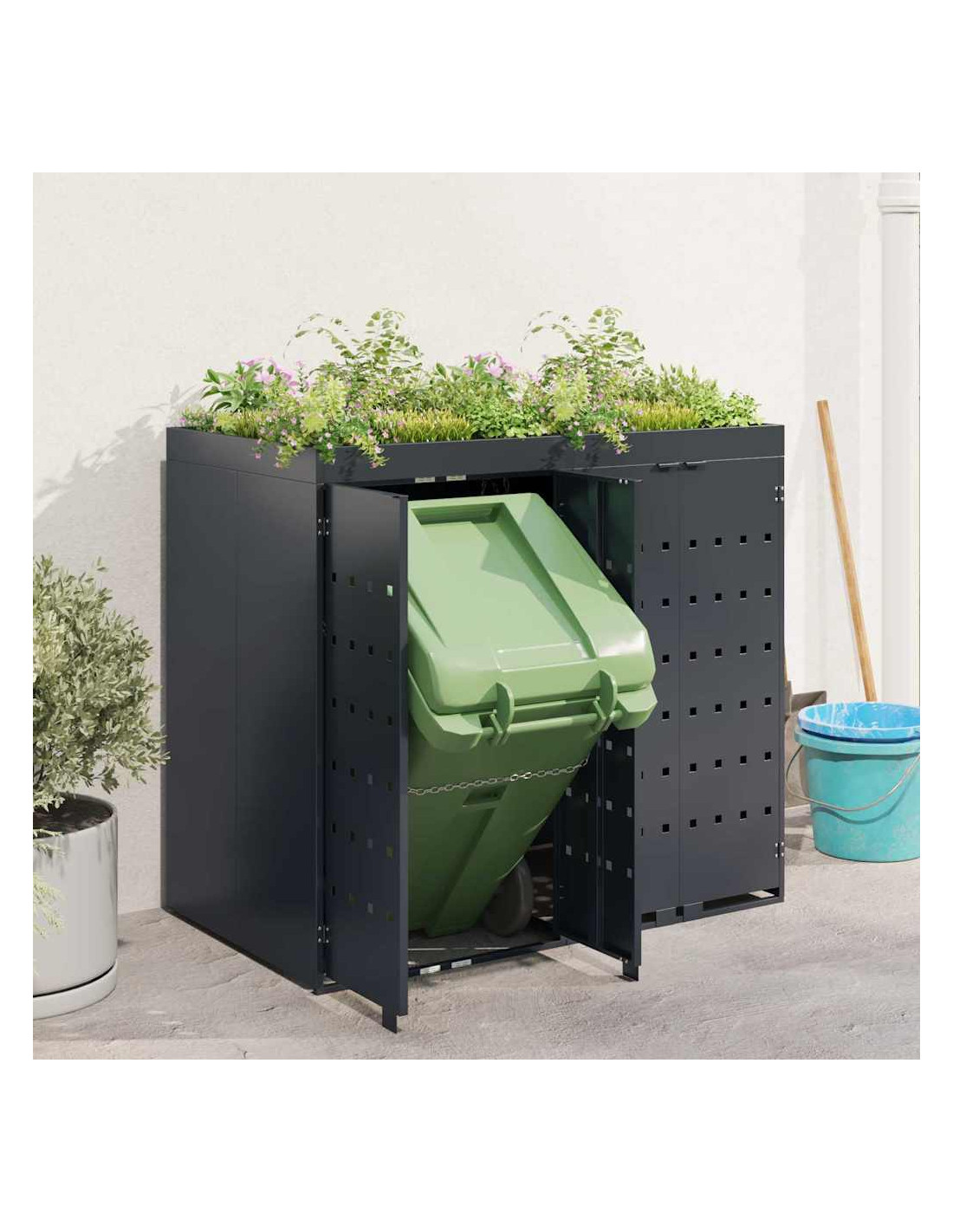 Questo contenitore per rifiuti con tetto da giardino è una soluzione chic per mantenere in ordine l'area esterna. È progettato per adattarsi bene a giardini e terrazze. Con il suo design minimale e linee pulite, si integra facilmente in ogni ambiente moderno. Nasconde i bidoni in modo elegante e permette di coltivare piante o erbe, portando un po'di natura nel tuo spazio.