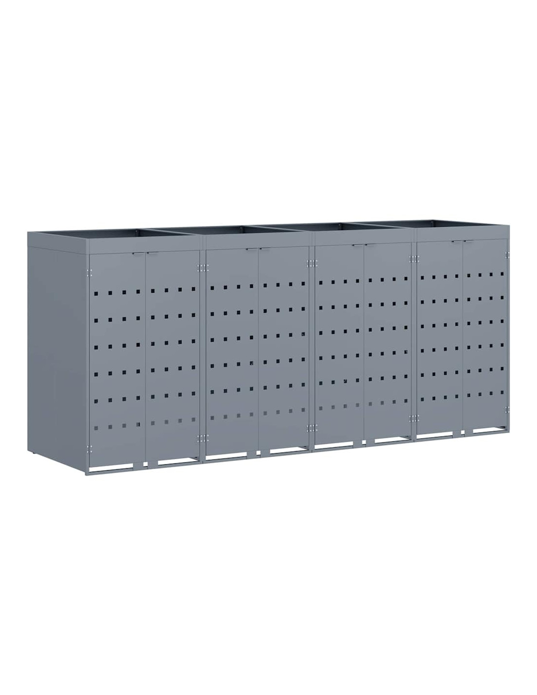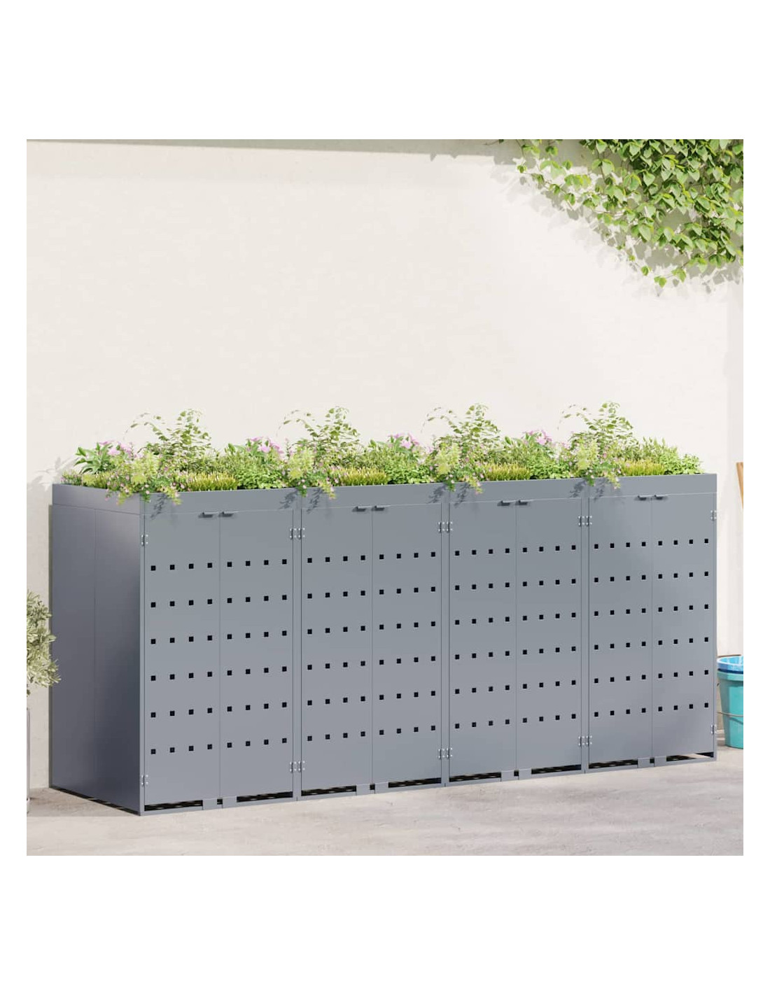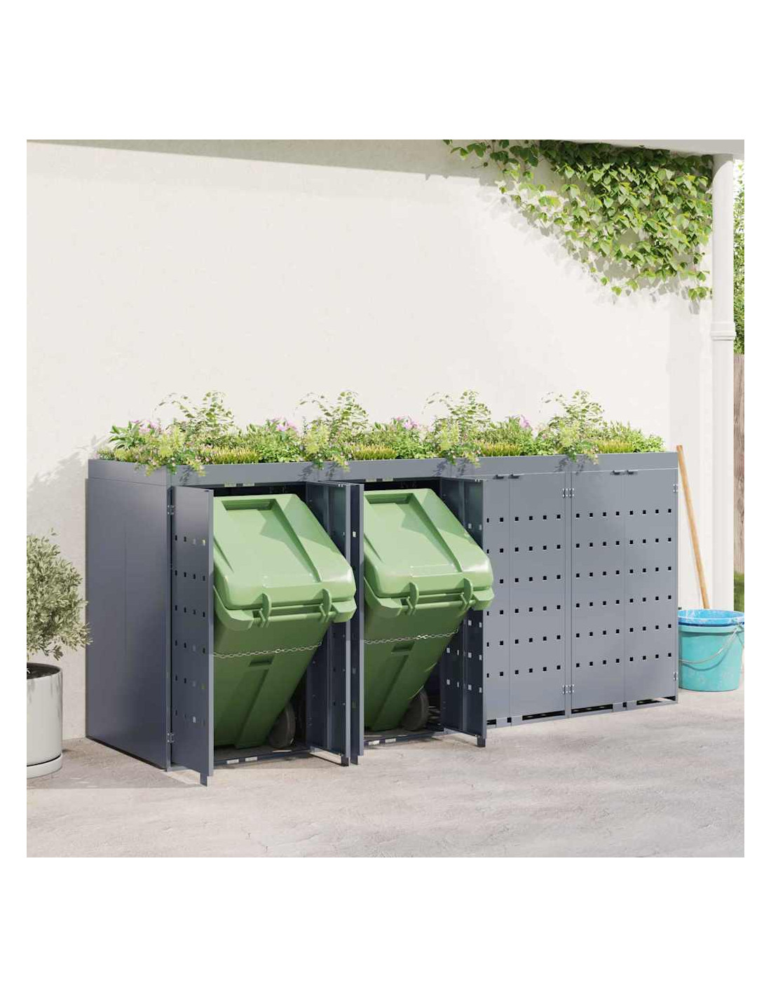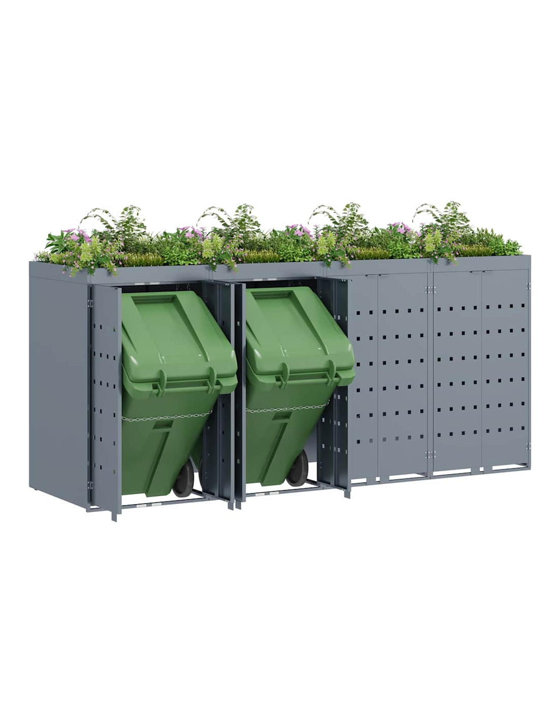 Questo contenitore per rifiuti con tetto da giardino è una soluzione chic per mantenere in ordine l'area esterna. È progettato per adattarsi bene a giardini e terrazze. Con il suo design minimale e linee pulite, si integra facilmente in ogni ambiente moderno. Nasconde i bidoni in modo elegante e permette di coltivare piante o erbe, portando un po'di natura nel tuo spazio.
