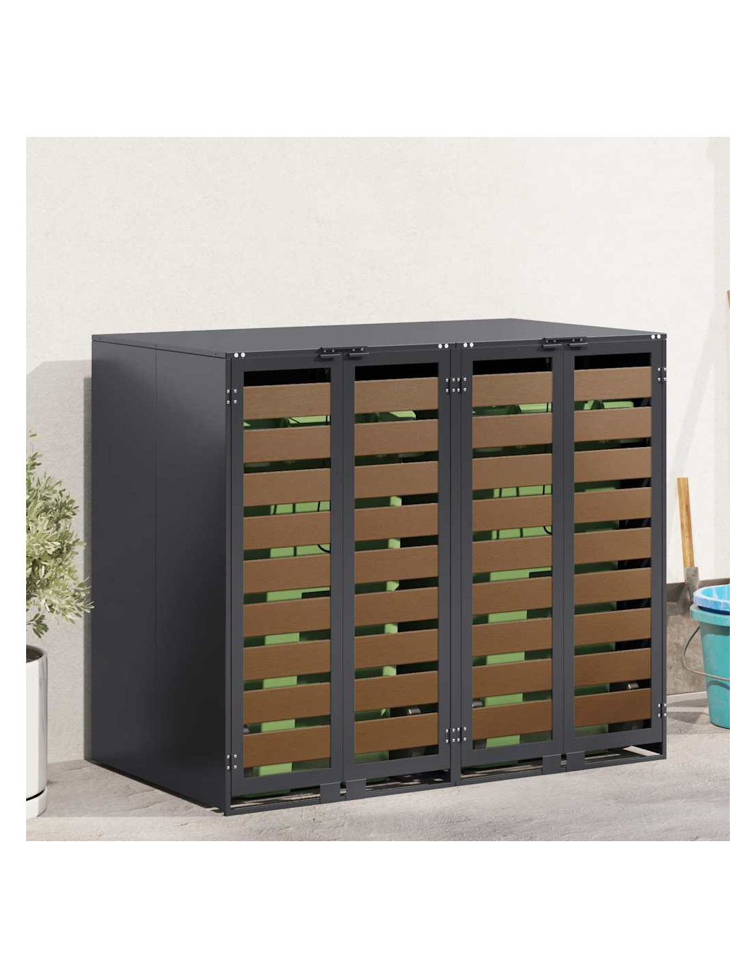 Questo ripostiglio per bidoni è una soluzione elegante per tenere ordinati i contenitori per i rifiuti all'aperto, mantenendo l'aspetto del giardino o della terrazza attraente. Il design moderno si integra bene con diversi ambienti esterni, combinando funzionalità e un bel look. Progettato per l'esterno, regge bene alle condizioni meteo, assicurando longevità e aiutando a mantenere tutto in ordine. Perfetto per chi ama l'organizzazione e la pulizia all'aperto, unisce utilità e stile.