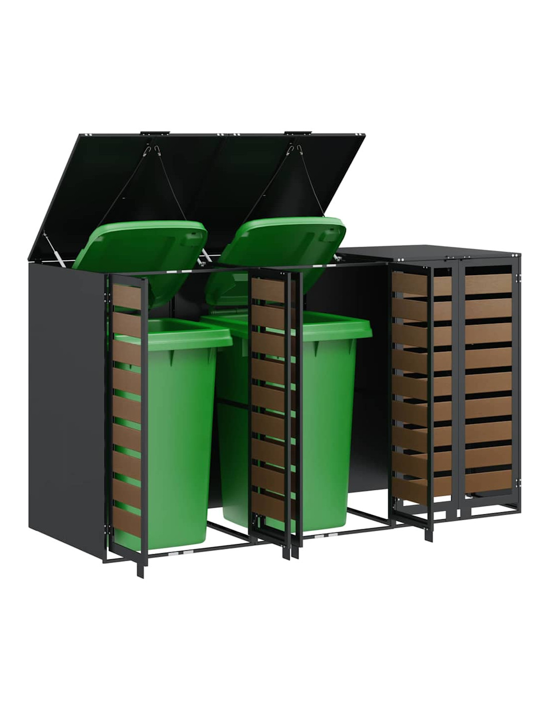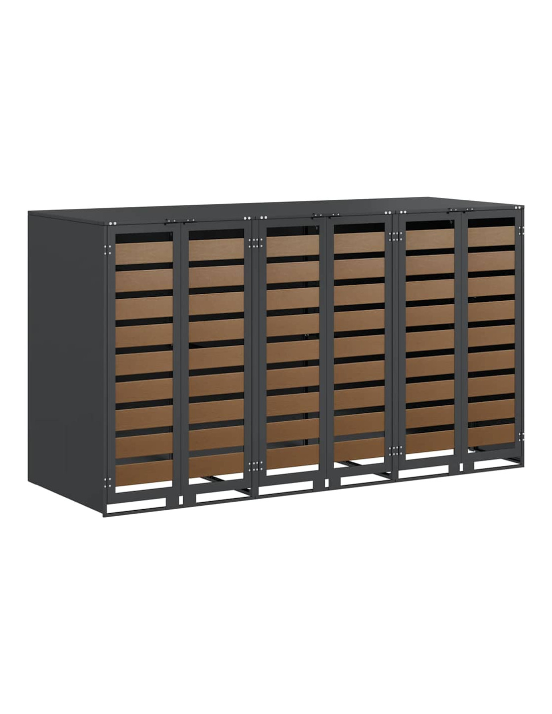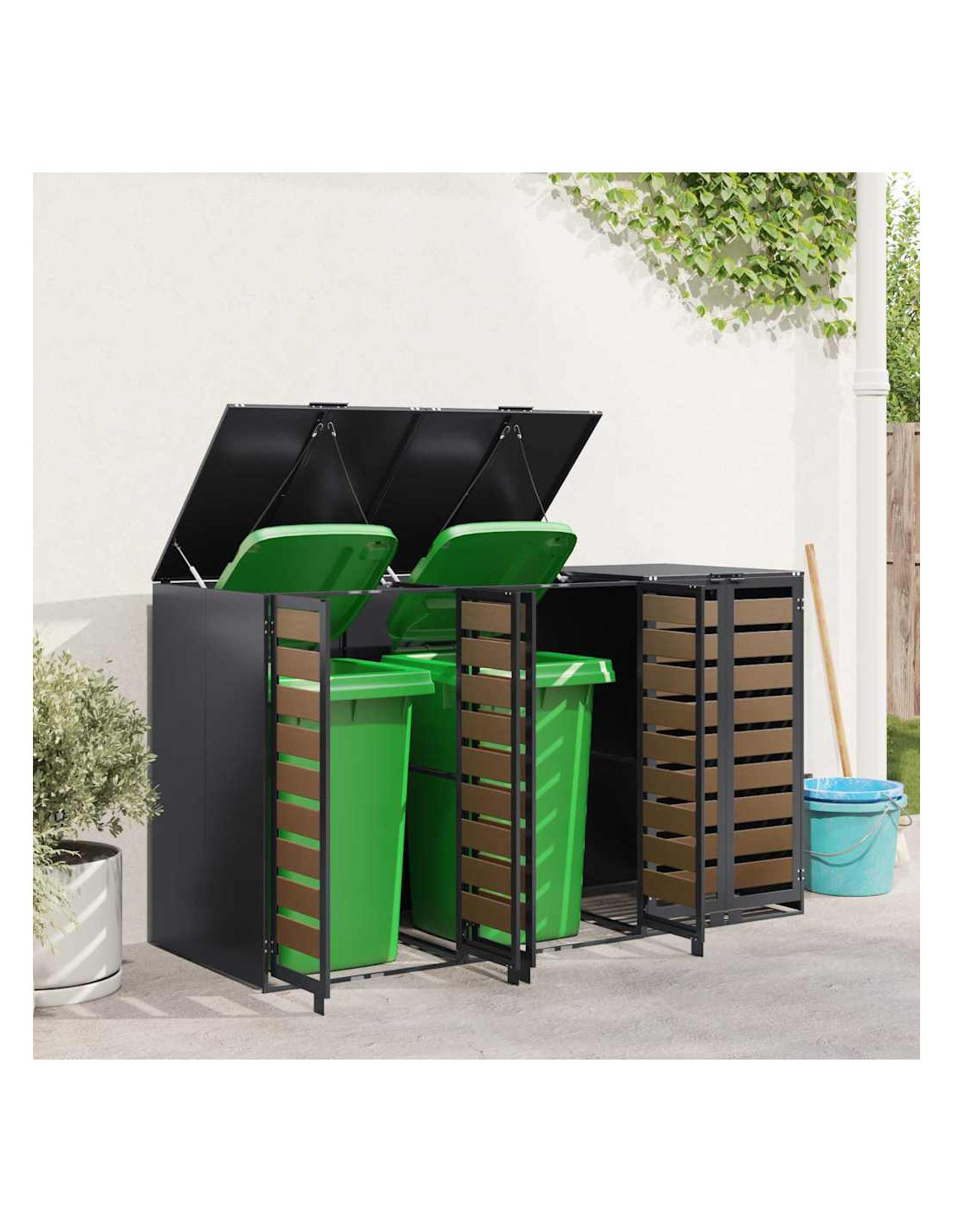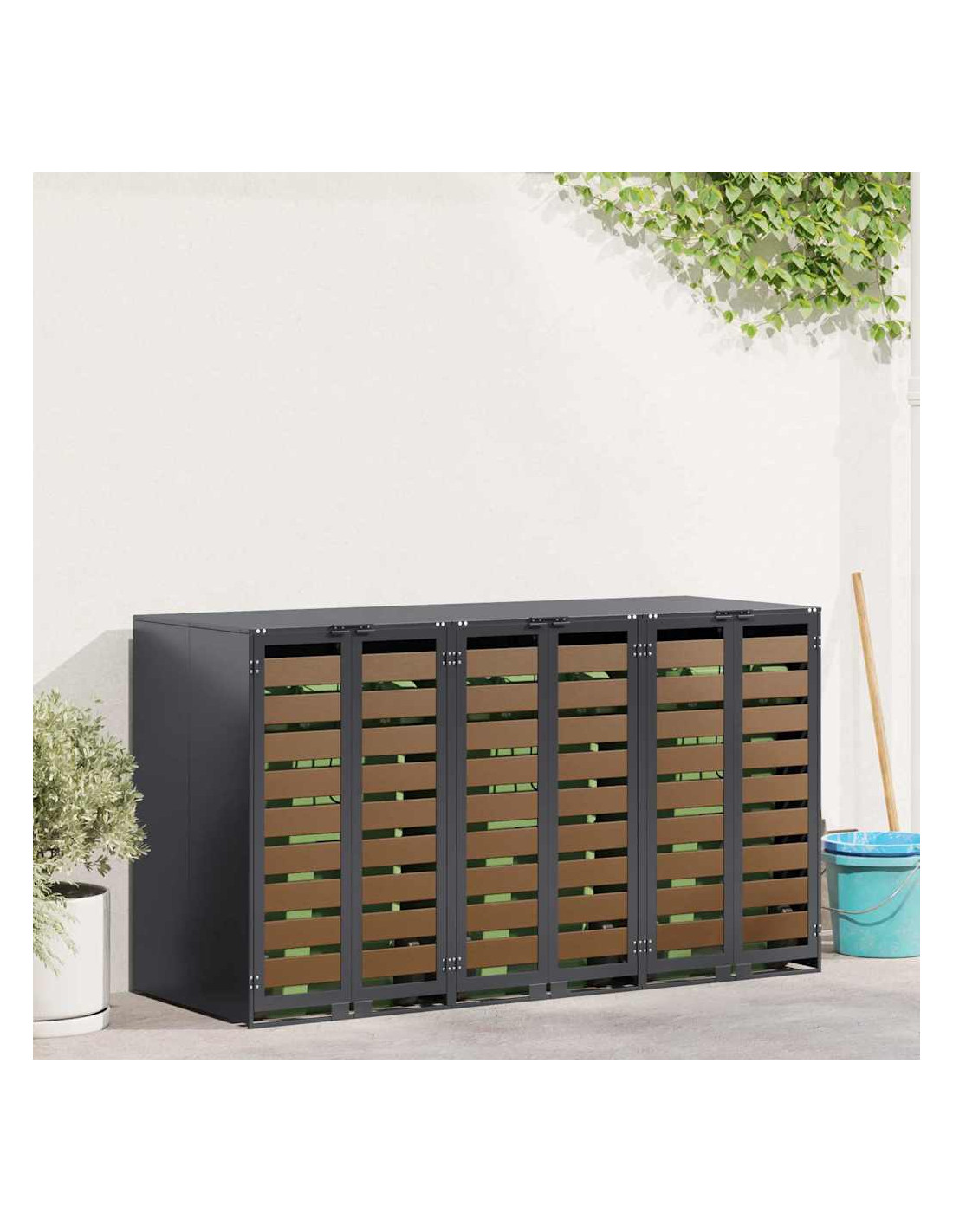 Questo ripostiglio per bidoni è una soluzione elegante per tenere ordinati i contenitori per i rifiuti all'aperto, mantenendo l'aspetto del giardino o della terrazza attraente. Il design moderno si integra bene con diversi ambienti esterni, combinando funzionalità e un bel look. Progettato per l'esterno, regge bene alle condizioni meteo, assicurando longevità e aiutando a mantenere tutto in ordine. Perfetto per chi ama l'organizzazione e la pulizia all'aperto, unisce utilità e stile.