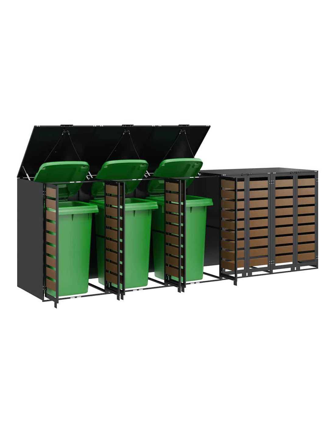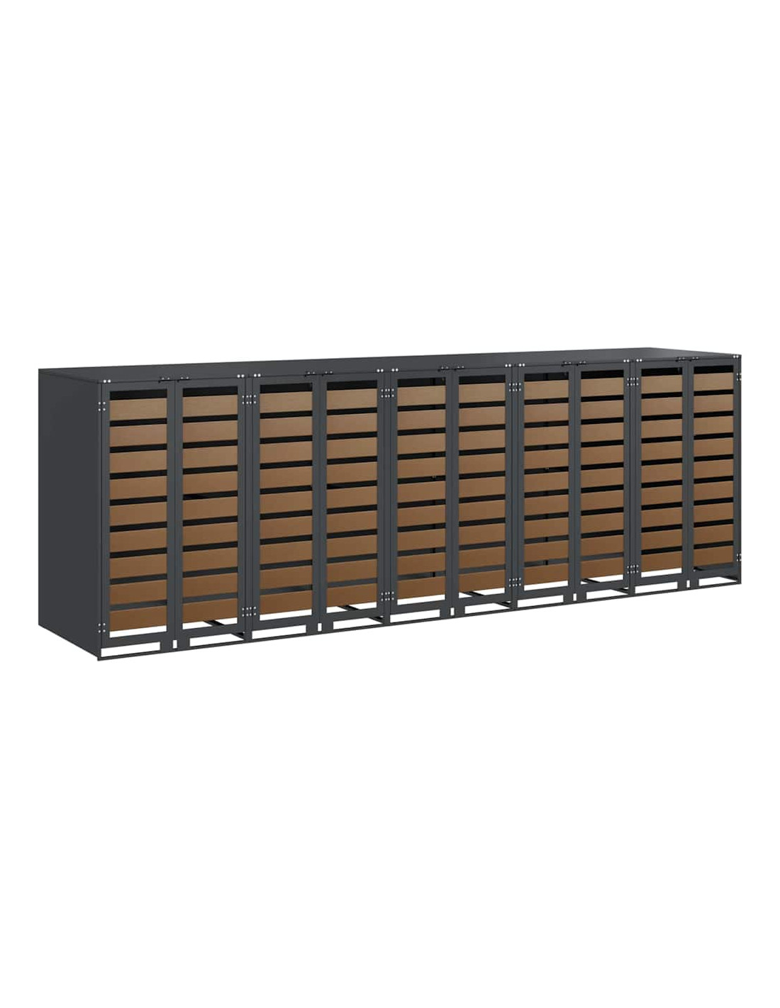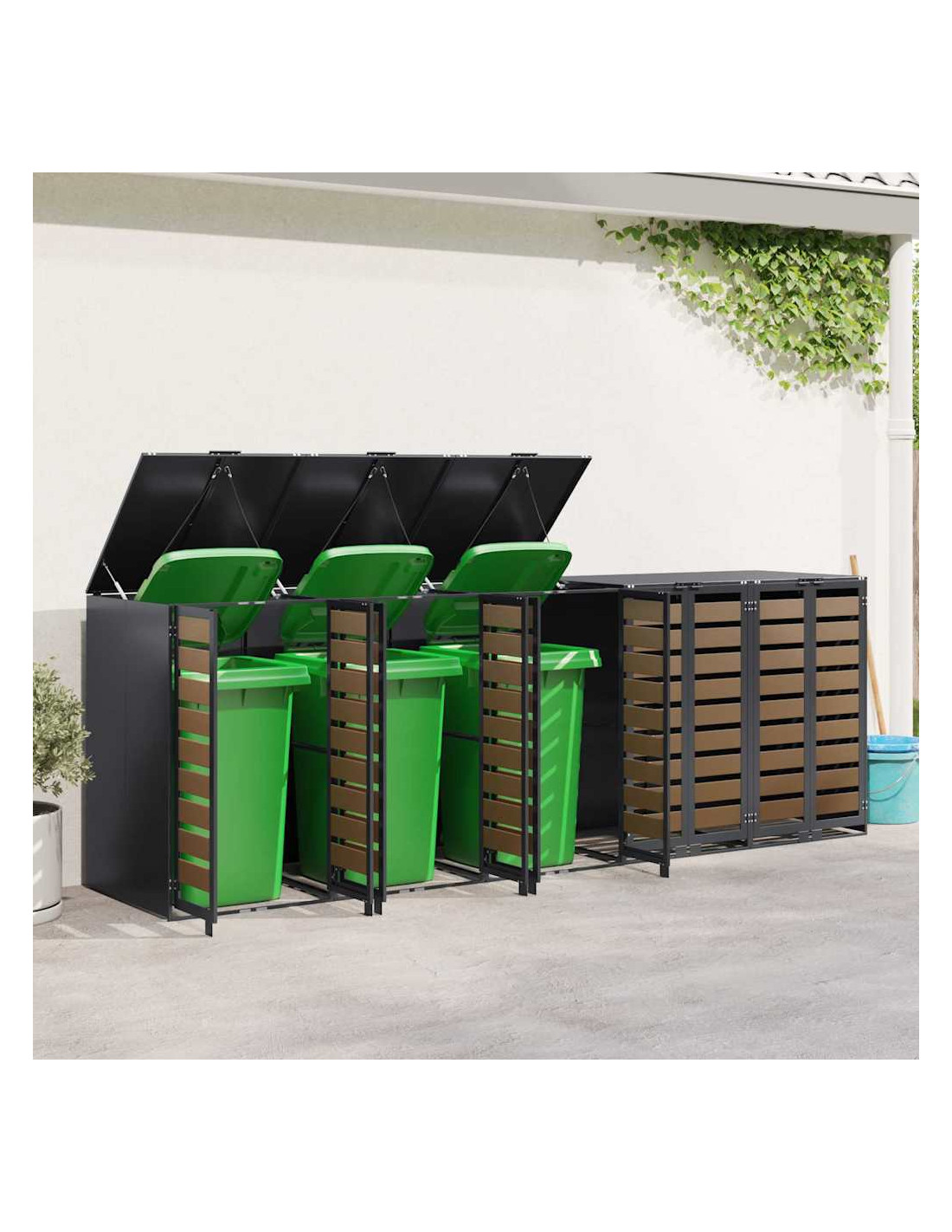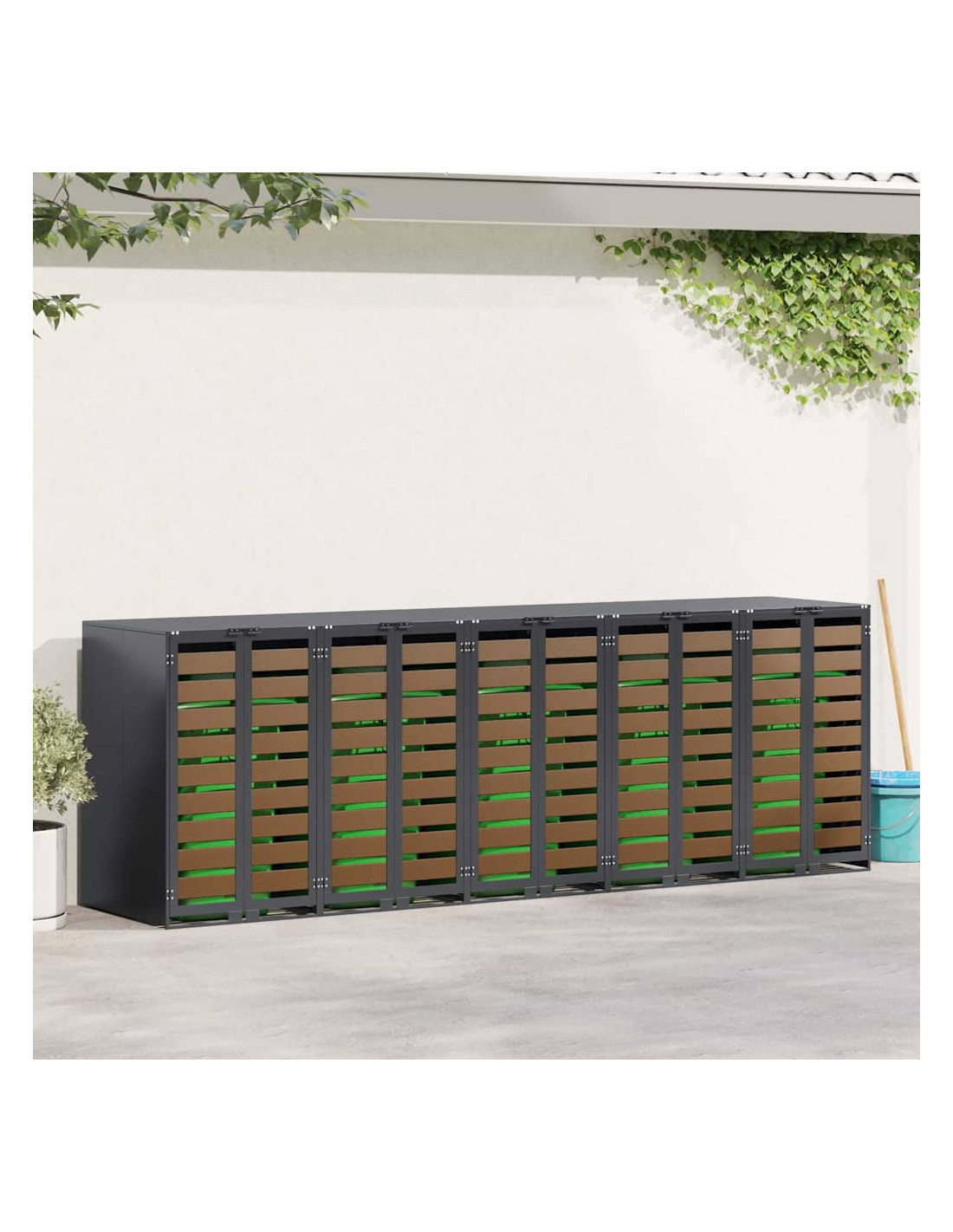 Questo ripostiglio per bidoni è una soluzione elegante per tenere ordinati i contenitori per i rifiuti all'aperto, mantenendo l'aspetto del giardino o della terrazza attraente. Il design moderno si integra bene con diversi ambienti esterni, combinando funzionalità e un bel look. Progettato per l'esterno, regge bene alle condizioni meteo, assicurando longevità e aiutando a mantenere tutto in ordine. Perfetto per chi ama l'organizzazione e la pulizia all'aperto, unisce utilità e stile.