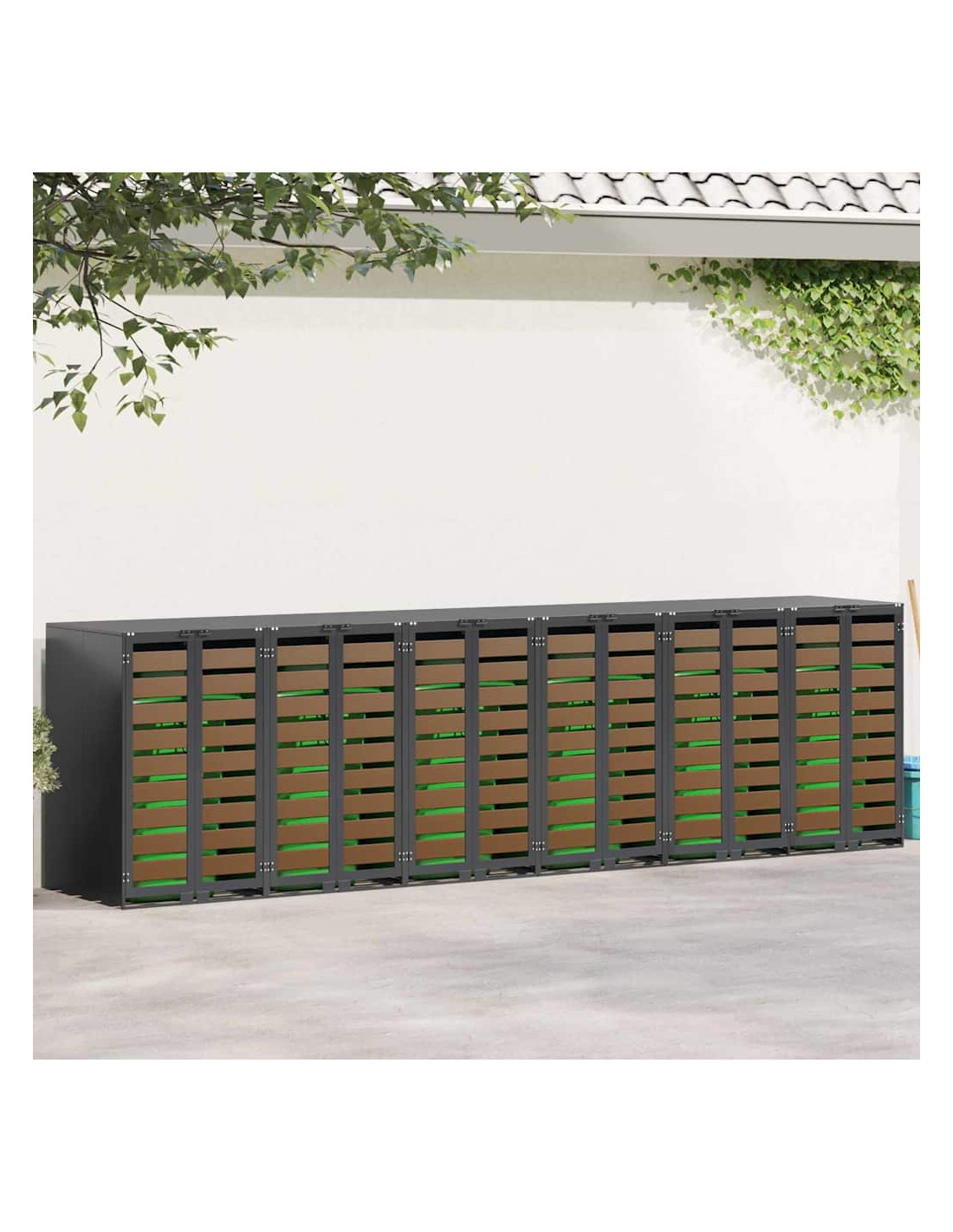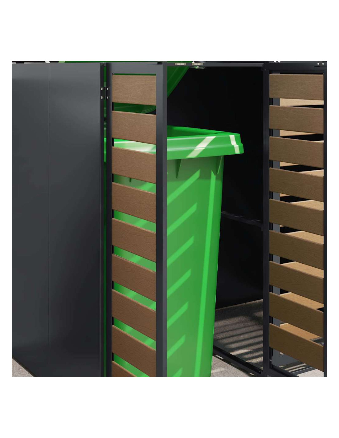Questo ripostiglio per bidoni è una soluzione elegante per tenere ordinati i contenitori per i rifiuti all'aperto, mantenendo l'aspetto del giardino o della terrazza attraente. Il design moderno si integra bene con diversi ambienti esterni, combinando funzionalità e un bel look. Progettato per l'esterno, regge bene alle condizioni meteo, assicurando longevità e aiutando a mantenere tutto in ordine. Perfetto per chi ama l'organizzazione e la pulizia all'aperto, unisce utilità e stile.