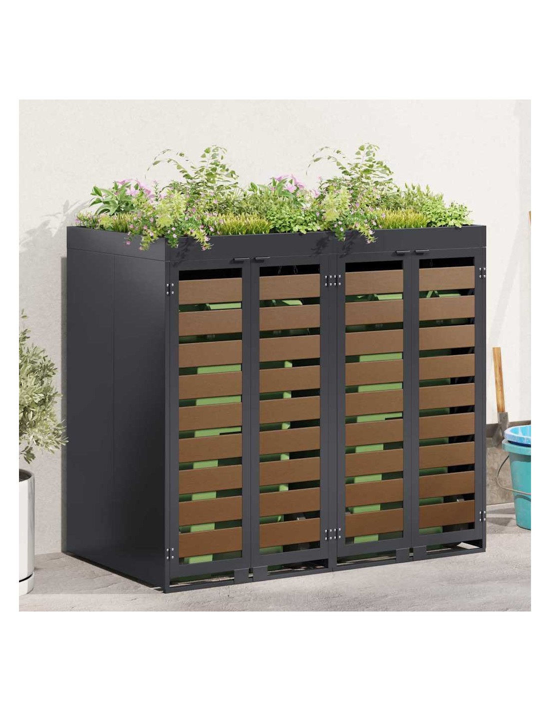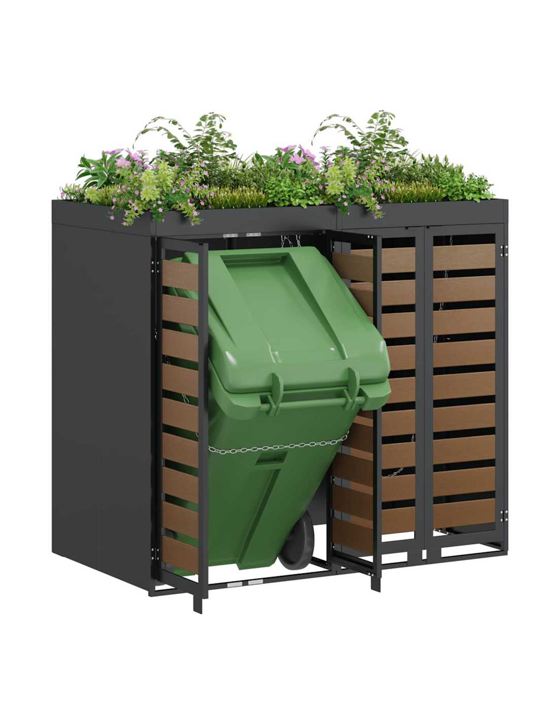 Questo ripostiglio per bidoni è una soluzione elegante per tenere ordinati i contenitori per i rifiuti all'aperto, mantenendo l'aspetto del giardino o della terrazza attraente. Il design moderno si integra bene con diversi ambienti esterni, combinando funzionalità e un bel look. Progettato per l'esterno, regge bene alle condizioni meteo, assicurando longevità e aiutando a mantenere tutto in ordine. Perfetto per chi ama l'organizzazione e la pulizia all'aperto, unisce utilità e stile.