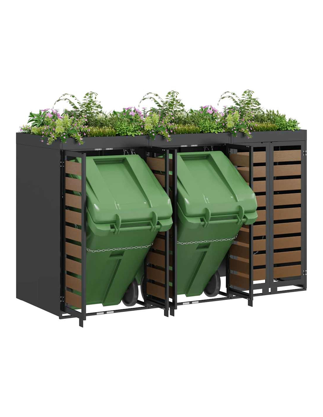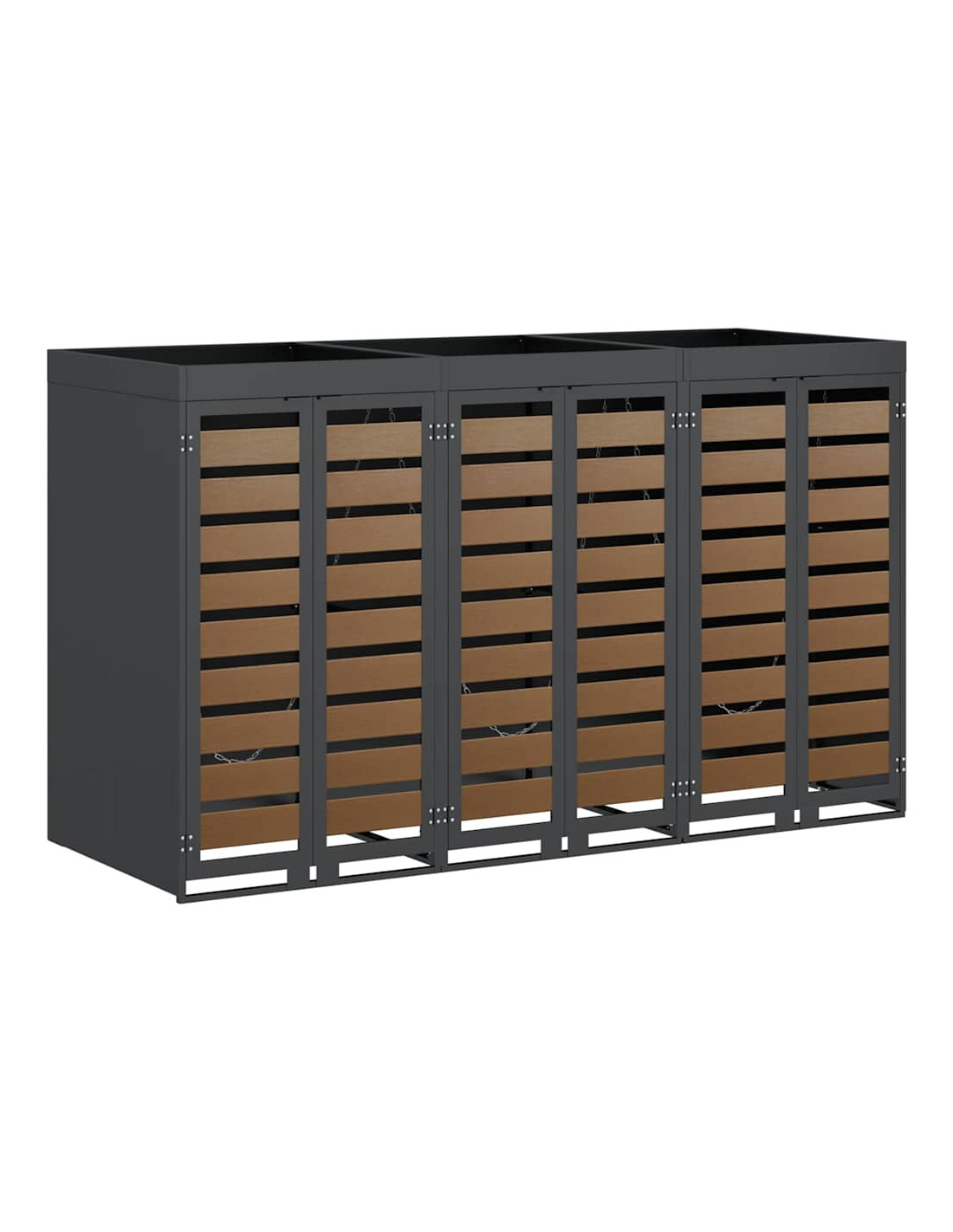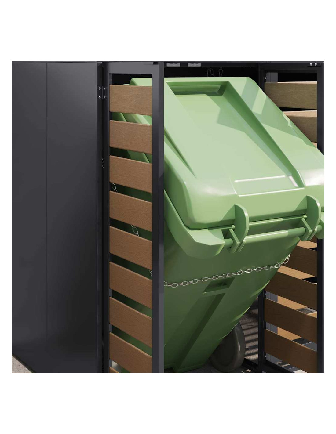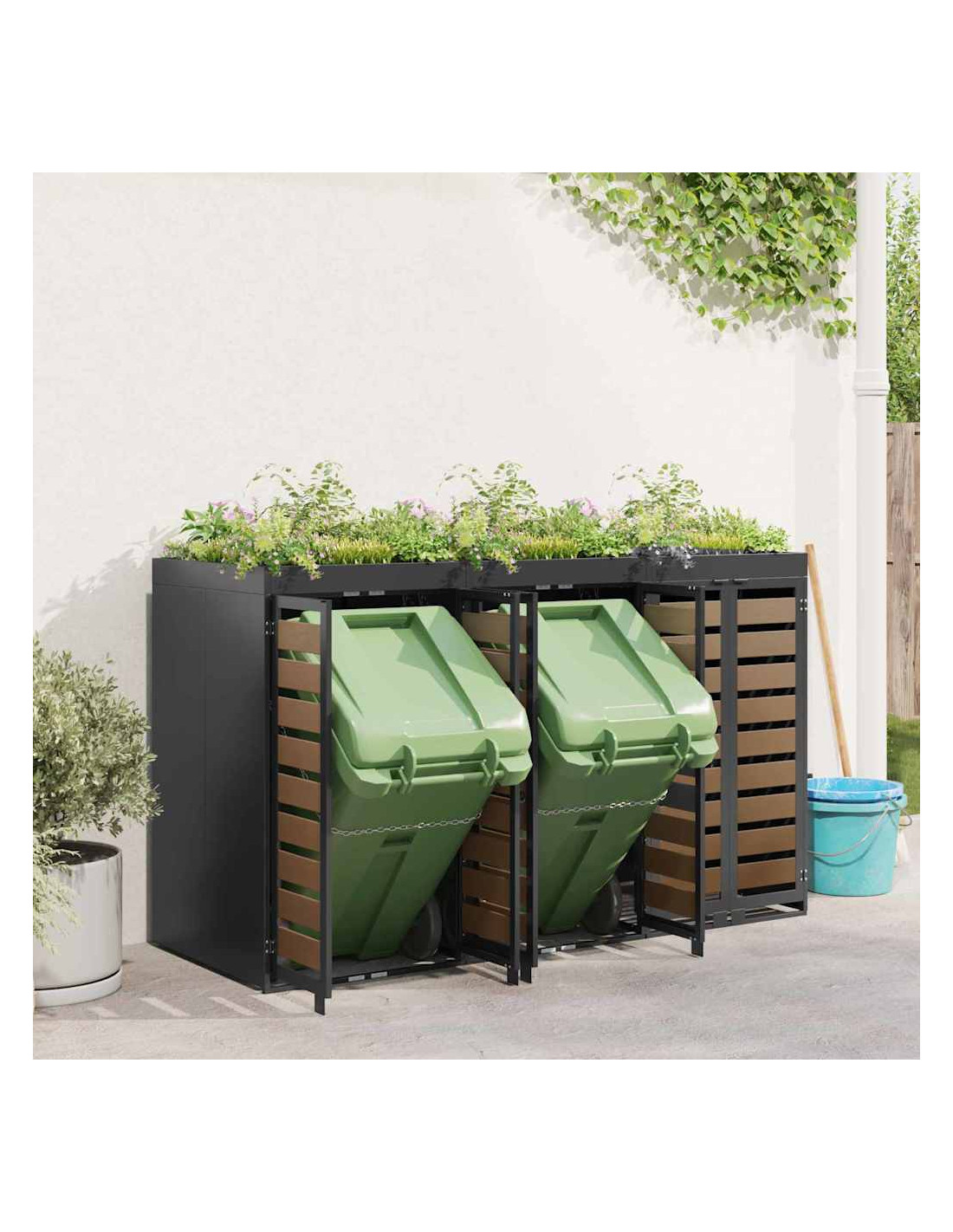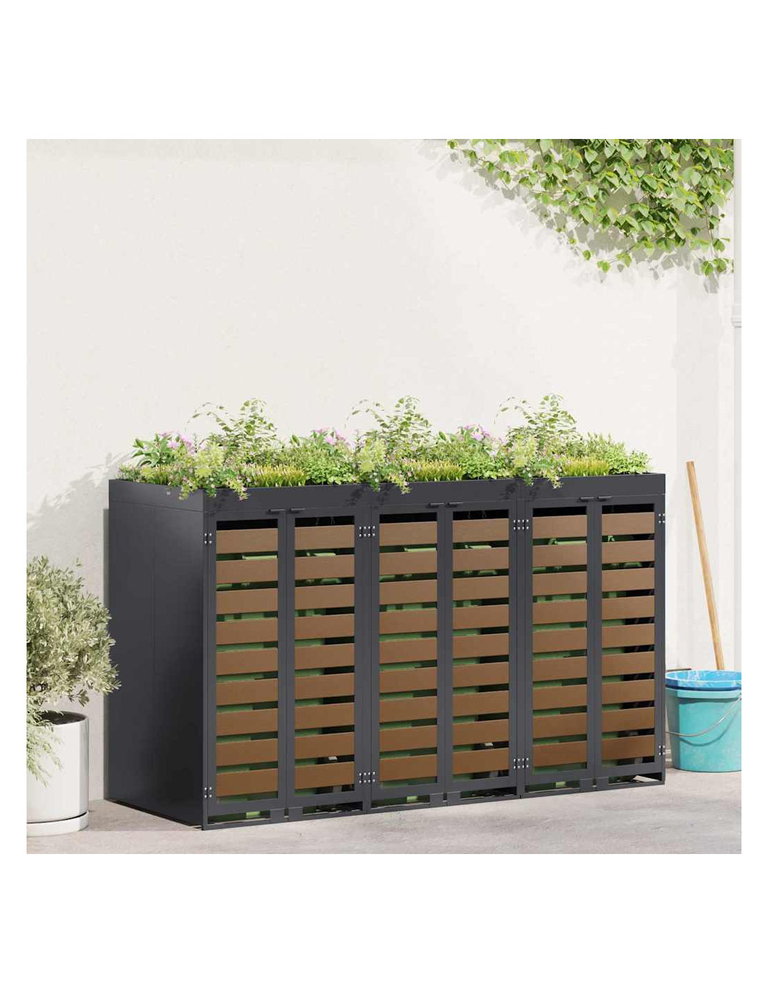 Questo ripostiglio per bidoni è una soluzione elegante per tenere ordinati i contenitori per i rifiuti all'aperto, mantenendo l'aspetto del giardino o della terrazza attraente. Il design moderno si integra bene con diversi ambienti esterni, combinando funzionalità e un bel look. Progettato per l'esterno, regge bene alle condizioni meteo, assicurando longevità e aiutando a mantenere tutto in ordine. Perfetto per chi ama l'organizzazione e la pulizia all'aperto, unisce utilità e stile.
