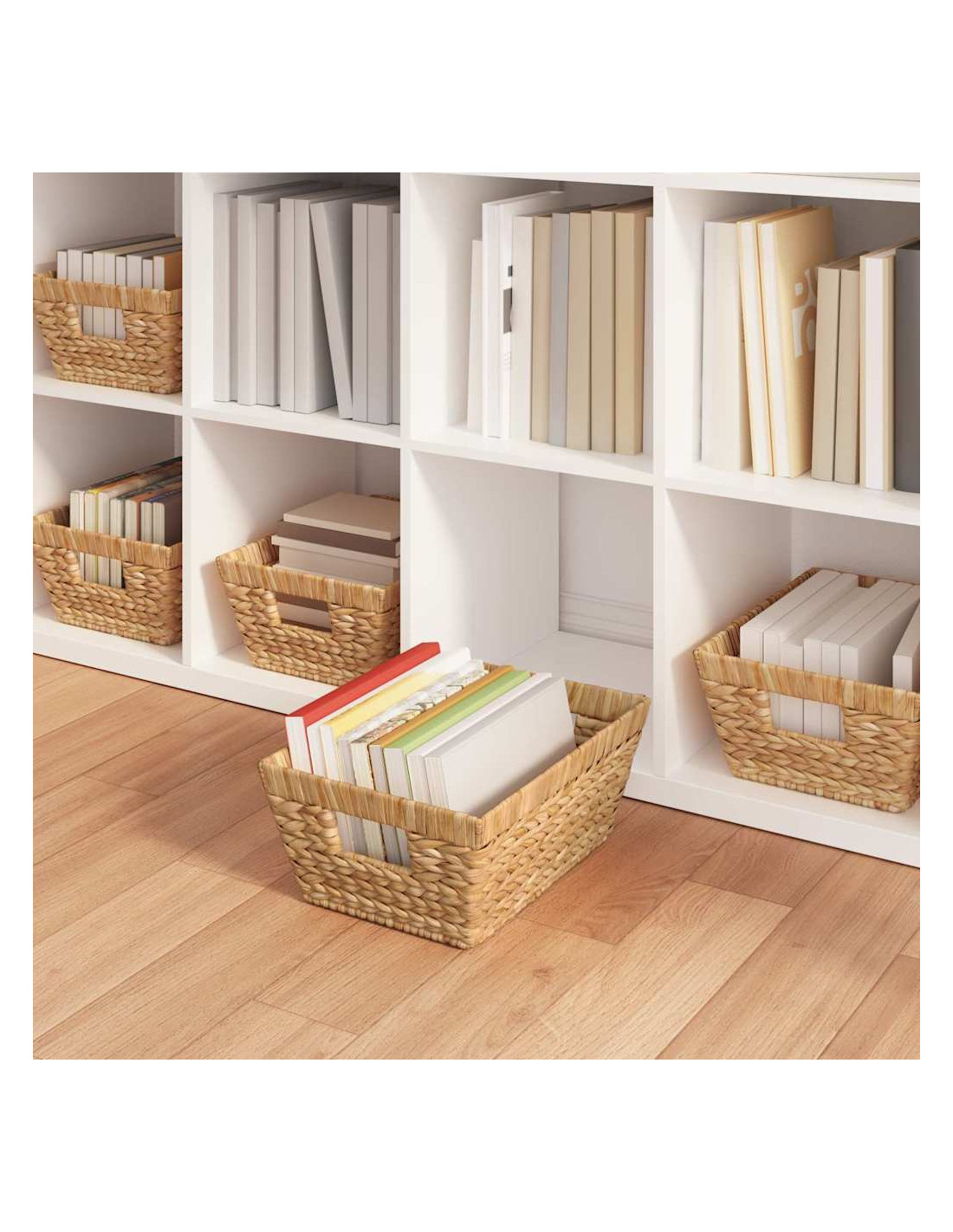 - Materiale in giacinto d'acqua: Questi cesti sono realizzati in giacinto d'acqua naturale. Hanno un aspetto bello e resistente, simile al rattan, adattandosi a qualsiasi stanza e durando a lungo.
