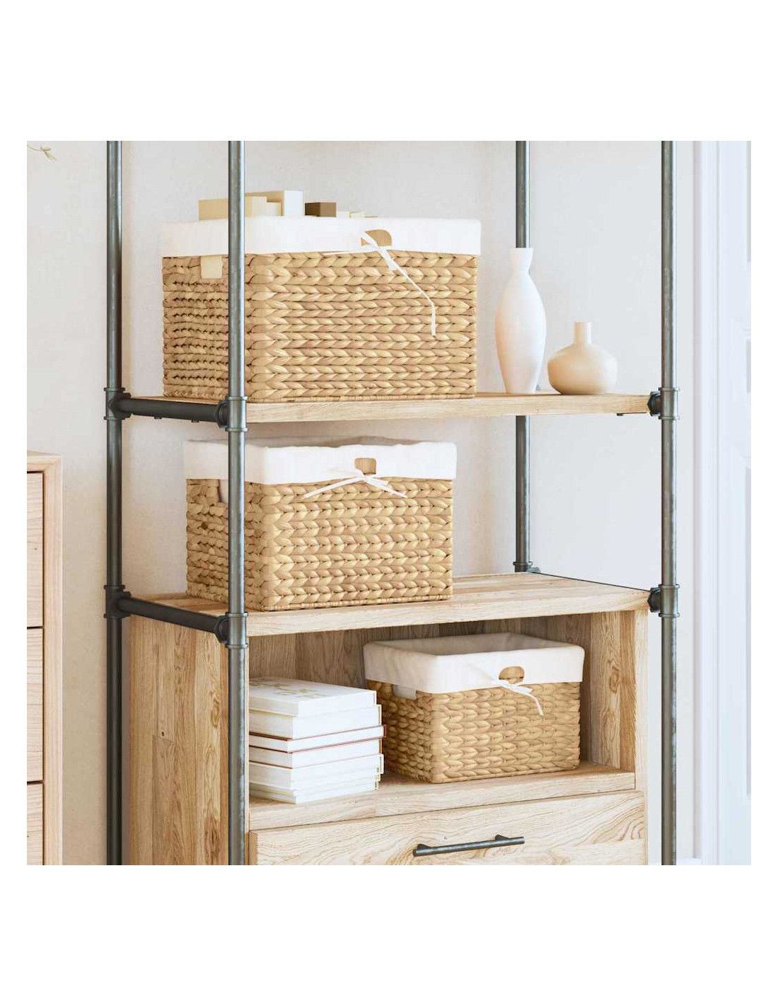 - Materiali: Realizzati in giacinto d'acqua, questi cesti di stoccaggio sono un'alternativa green per organizzare la casa. Le fibre naturali creano una superficie testurizzata bella, che aumenta il loro fascino visivo. Il giacinto d'acqua è resistente e flessibile, garantendo che i cesti mantengano la loro forma nel tempo. La finitura naturale offre calore, adattandosi bene a stili rustici, vintage o bohémien.