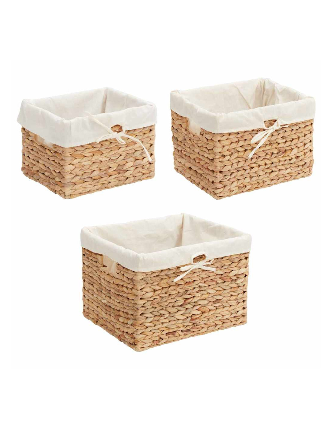 Questi cesti intrecciati in giacinto d'acqua naturale offrono una soluzione elegante e versatile per organizzare la tua casa. Con una forma rettangolare, uniscono praticità e bellezza, integrandosi perfettamente in qualsiasi stanza. Ideali per il soggiorno, la camera da letto o l'ufficio, portano un tocco di eleganza rustica.