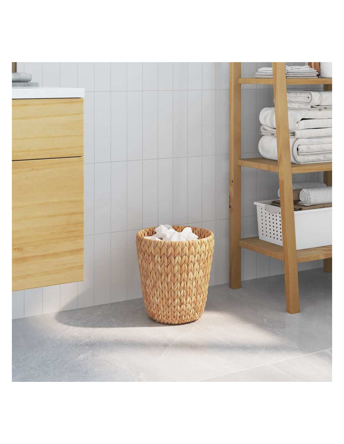 Questi cestini per rifiuti domestici uniscono perfettamente praticità e un tocco rustico. Progettati per adattarsi bene a interni in stile country, hanno un colore naturale che si abbina a diversi contesti. La forma cilindrica con texture offre un aspetto interessante, rendendoli un'ottima scelta per soggiorni o camere da letto. Perfetti per chi cerca soluzioni di stoccaggio pratiche che siano anche elementi decorativi.