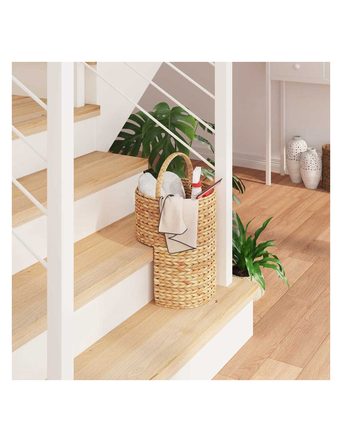 Il Cesto per Scale è una soluzione stylish per organizzare gli spazi in casa, grazie al suo stile rustico. Ha una forma trapezoidale che si adatta perfettamente sulle scale, permettendo di tenere in ordine gli oggetti domestici e rendendoli facilmente accessibili. Che sia per giocattoli, libri o altre cose necessarie, non solo è pratico, ma porta anche ordine e armonia agli ambienti domestici.