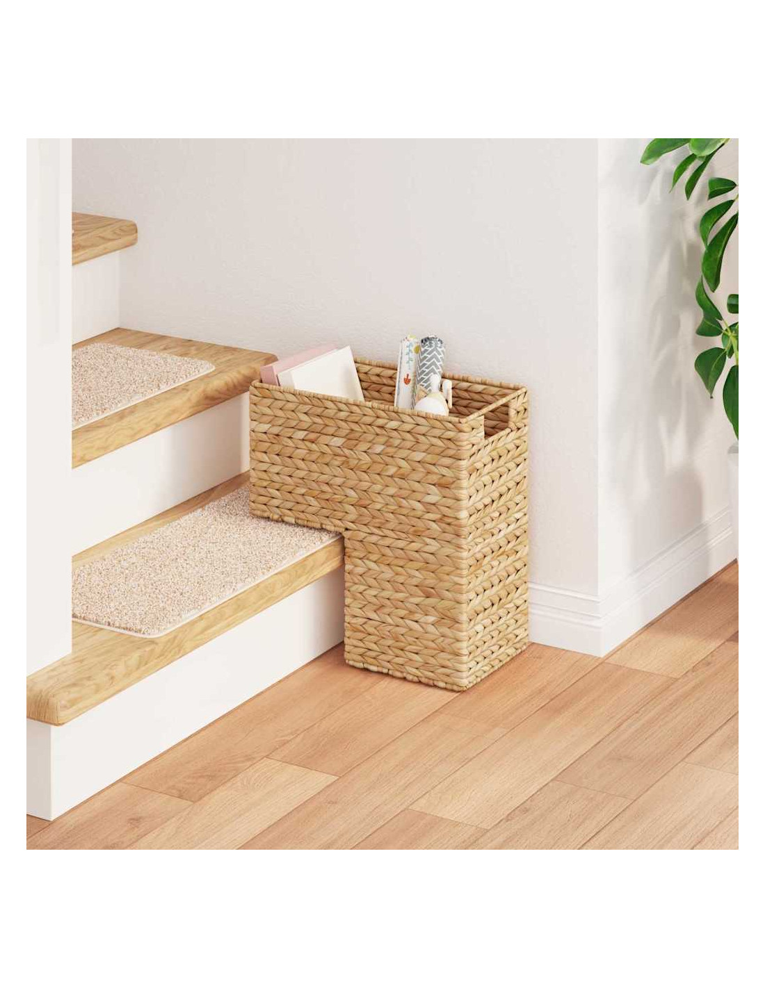 Questo cesto per scale unisce charme rustico e funzionalità pratica, diventando un must per sistemare e organizzare oggetti in varie stanze della tua casa. Con il suo caldo marrone e la texture intrecciata, si adatta facilmente a soggiorni e camere da letto, arricchendo la tua decorazione con un'aura accogliente. La sua forma trapezoidale non è solo carina, ma si adatta perfettamente alle scale, offrendo spazio in un’area spesso dimenticata.