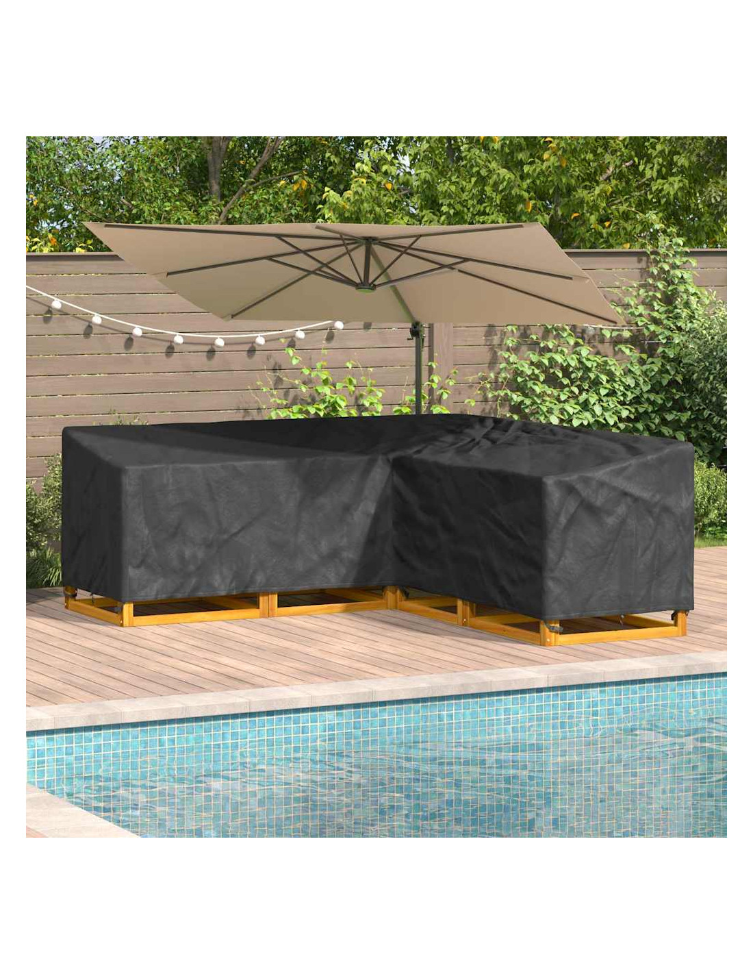 Questa copertura per mobili a L mescola alla perfezione stile e funzionalità, ed è pensata per chi vuole tenere al sicuro i propri arredi esterni. Con linee pulite e un design moderno, si integra perfettamente in ogni giardino o terrazza. Adatta per uso esterno, è la soluzione ideale per le stagioni primaverili e estive, per far sì che i tuoi mobili siano sempre in ottime condizioni, nonostante le intemperie.