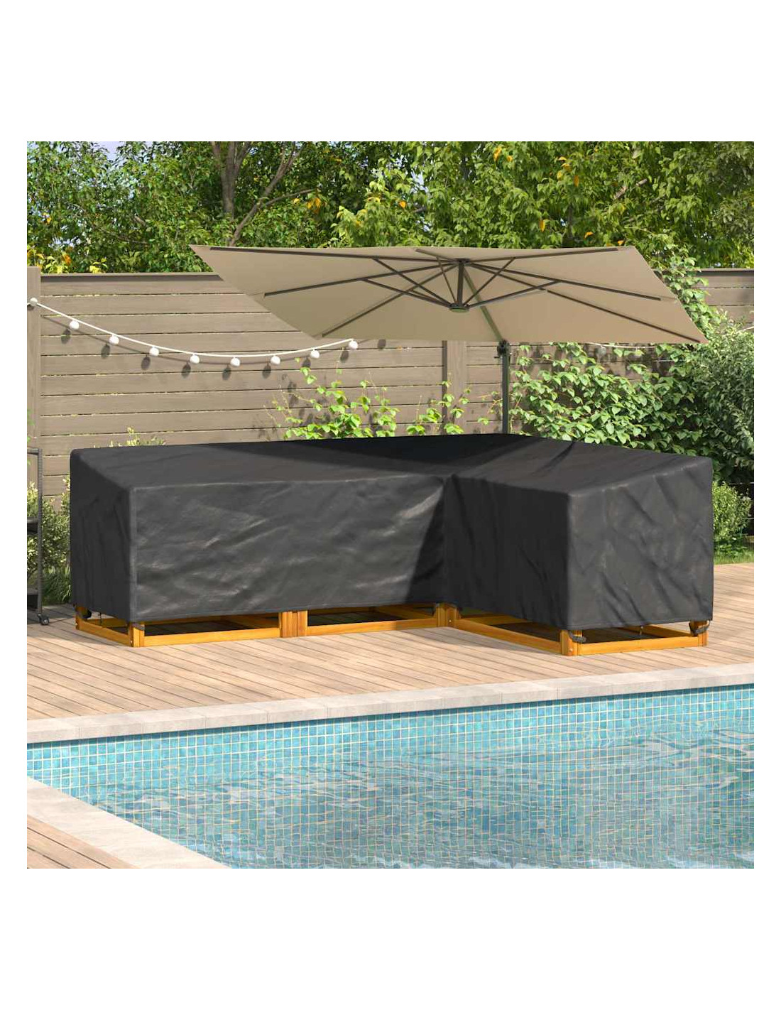 Questa copertura per mobili a L mescola alla perfezione stile e funzionalità, ed è pensata per chi vuole tenere al sicuro i propri arredi esterni. Con linee pulite e un design moderno, si integra perfettamente in ogni giardino o terrazza. Adatta per uso esterno, è la soluzione ideale per le stagioni primaverili e estive, per far sì che i tuoi mobili siano sempre in ottime condizioni, nonostante le intemperie.