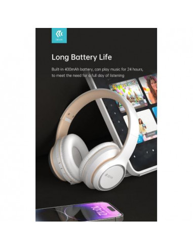Devia Cuffia wireless EM039 bluetooth V. 5.2 ricaricabile Bianca