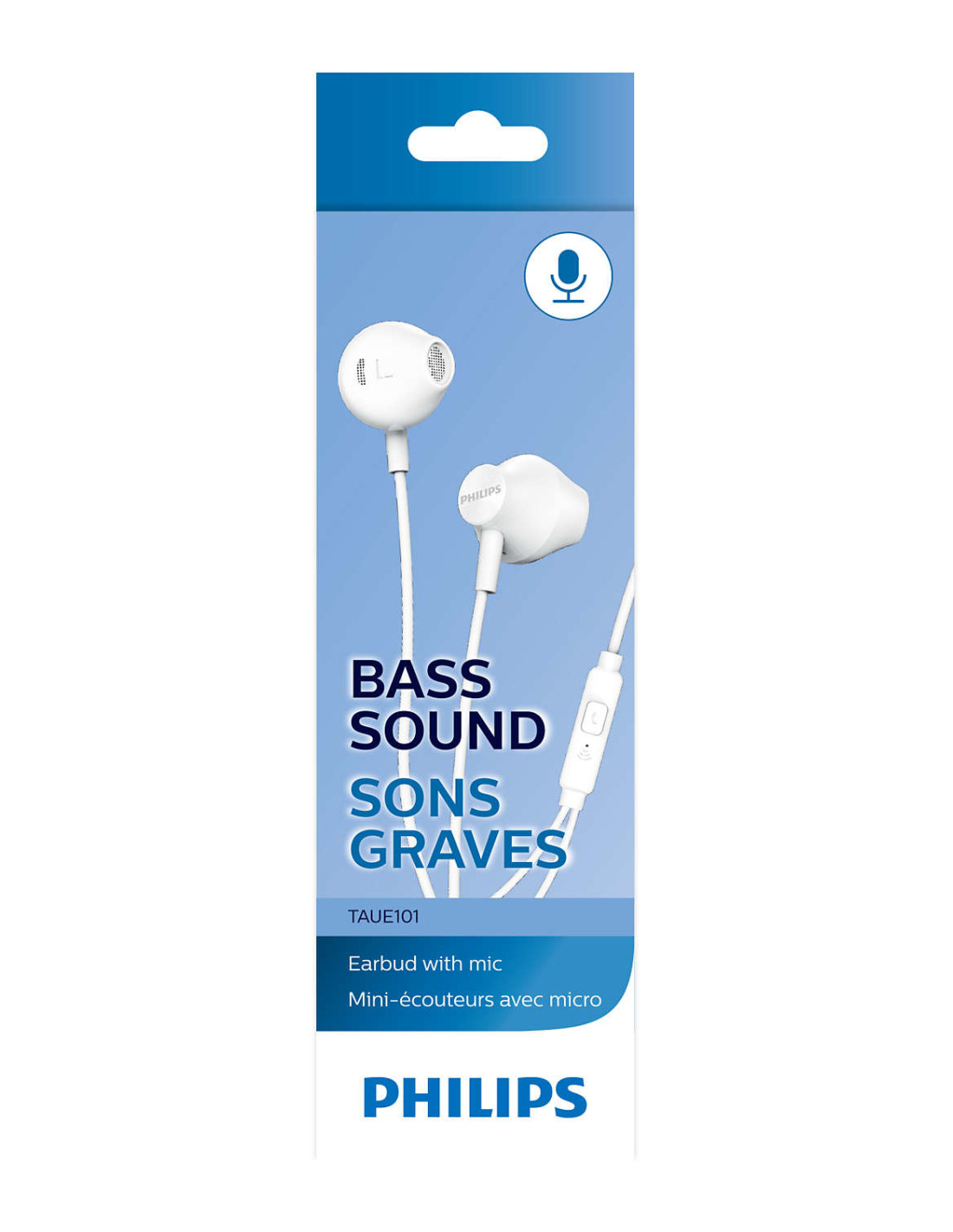 Philips TAUE101WT. Tipo di prodotto: Auricolare. Tecnologia di connessione: Cablato. Utilizzo raccomandato: Musica e Chiamate. Frequenza cuffia: 20 - 20000 Hz. Lunghezza cavo: 1,2 m. Peso: 65,4 g. Colore del prodotto: Bianco