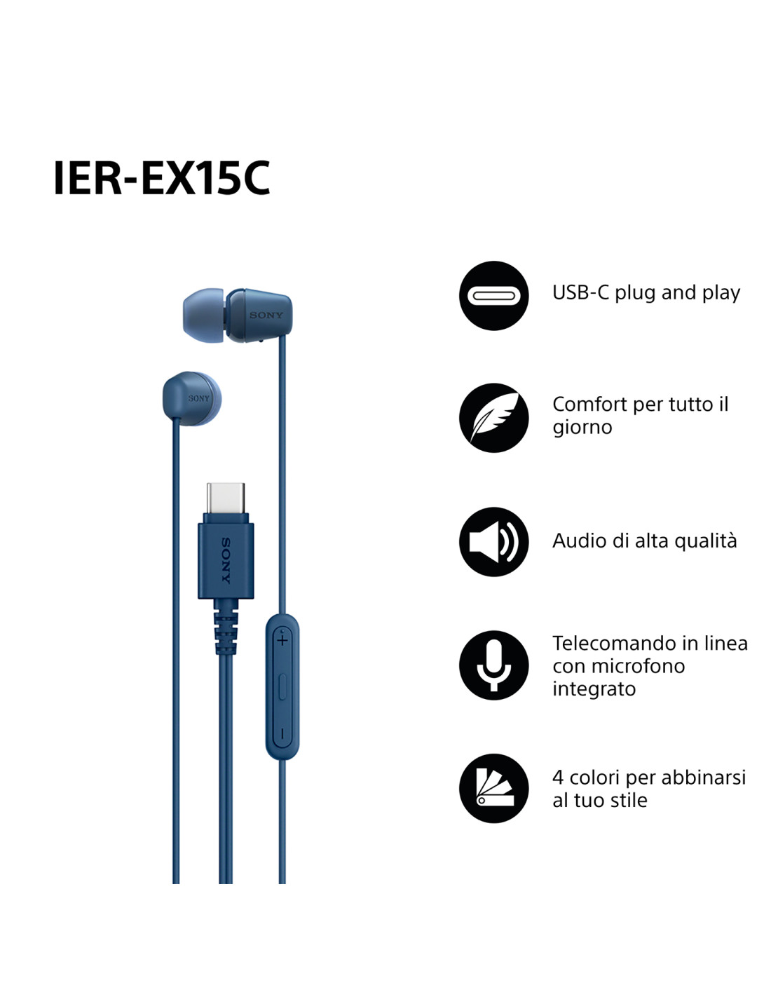 Sony IER-EX15C Auricolare Cablato In-ear Musica e Chiamate USB tipo-C Blu