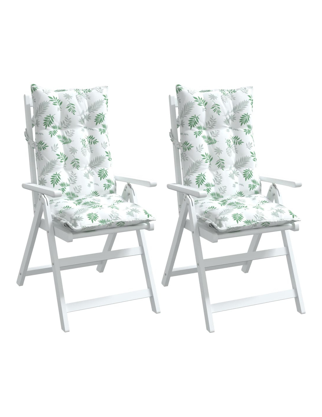 Cuscini Sedia Schienale Alto 2 pz Motivo Foglie Tessuto Oxford