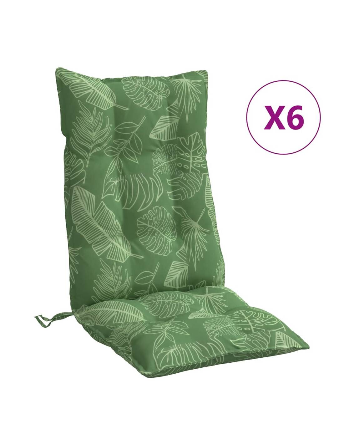 Cuscini Sedia Schienale Alto 6 pz Motivo Foglie Tessuto Oxford