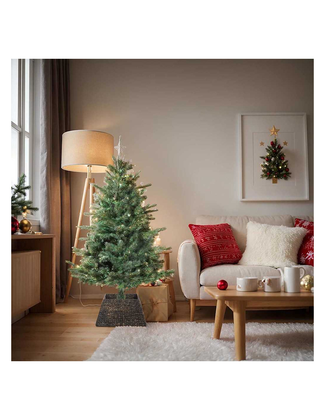 - Componenti: Il colletto ha un design unico che si avvolge facilmente attorno alla base dell'albero. È una soluzione pensata per il decor festivo, dando un aspetto pulito e rifinito, perfetto per famiglie e momenti sereni. La sua semplicità assicura che l'albero rimanga il vero protagonista, mentre il colletto si complementa con le altre decorazioni.