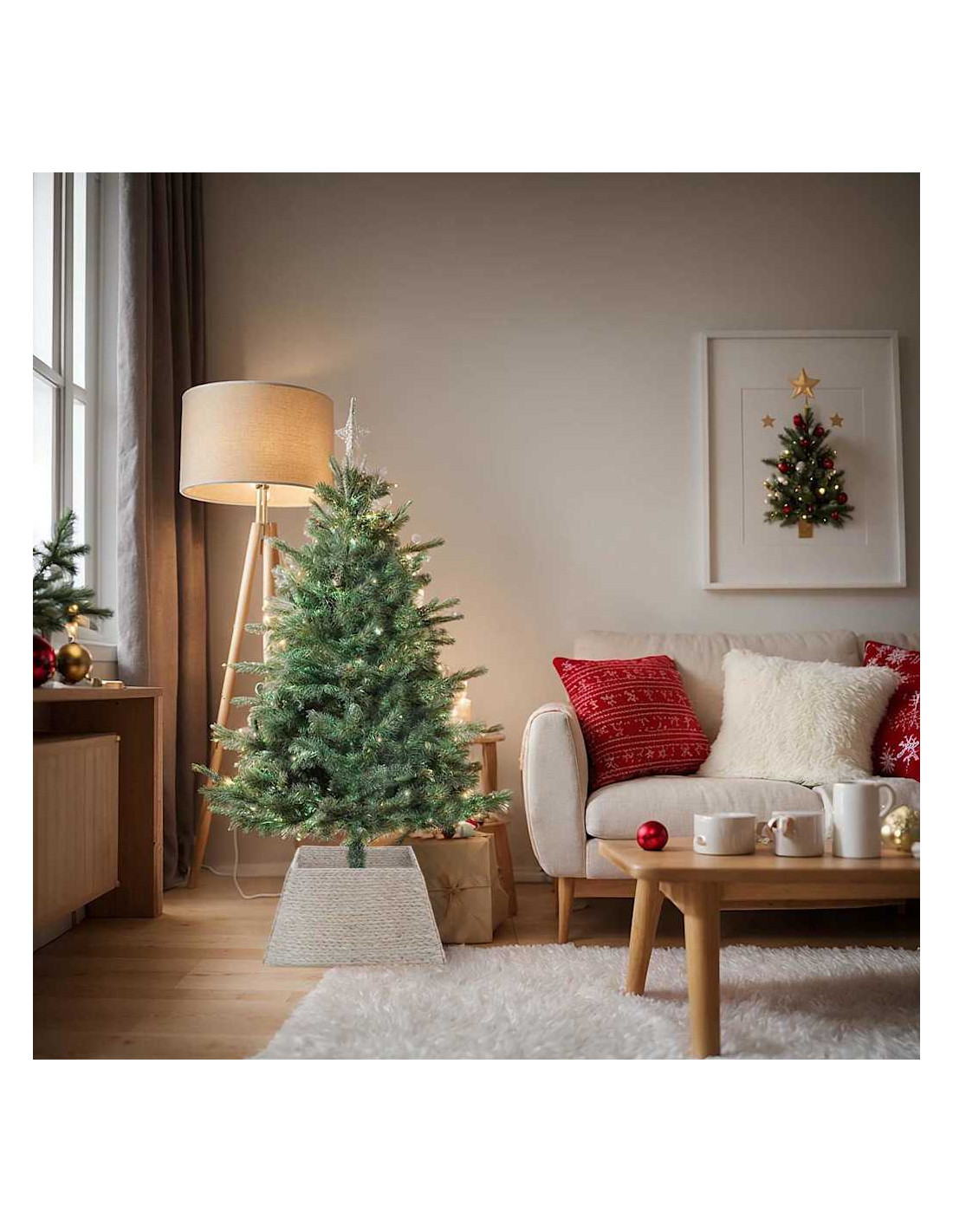 - Componenti: Il colletto ha un design unico che si avvolge facilmente attorno alla base dell'albero. È una soluzione pensata per il decor festivo, dando un aspetto pulito e rifinito, perfetto per famiglie e momenti sereni. La sua semplicità assicura che l'albero rimanga il vero protagonista, mentre il colletto si complementa con le altre decorazioni.