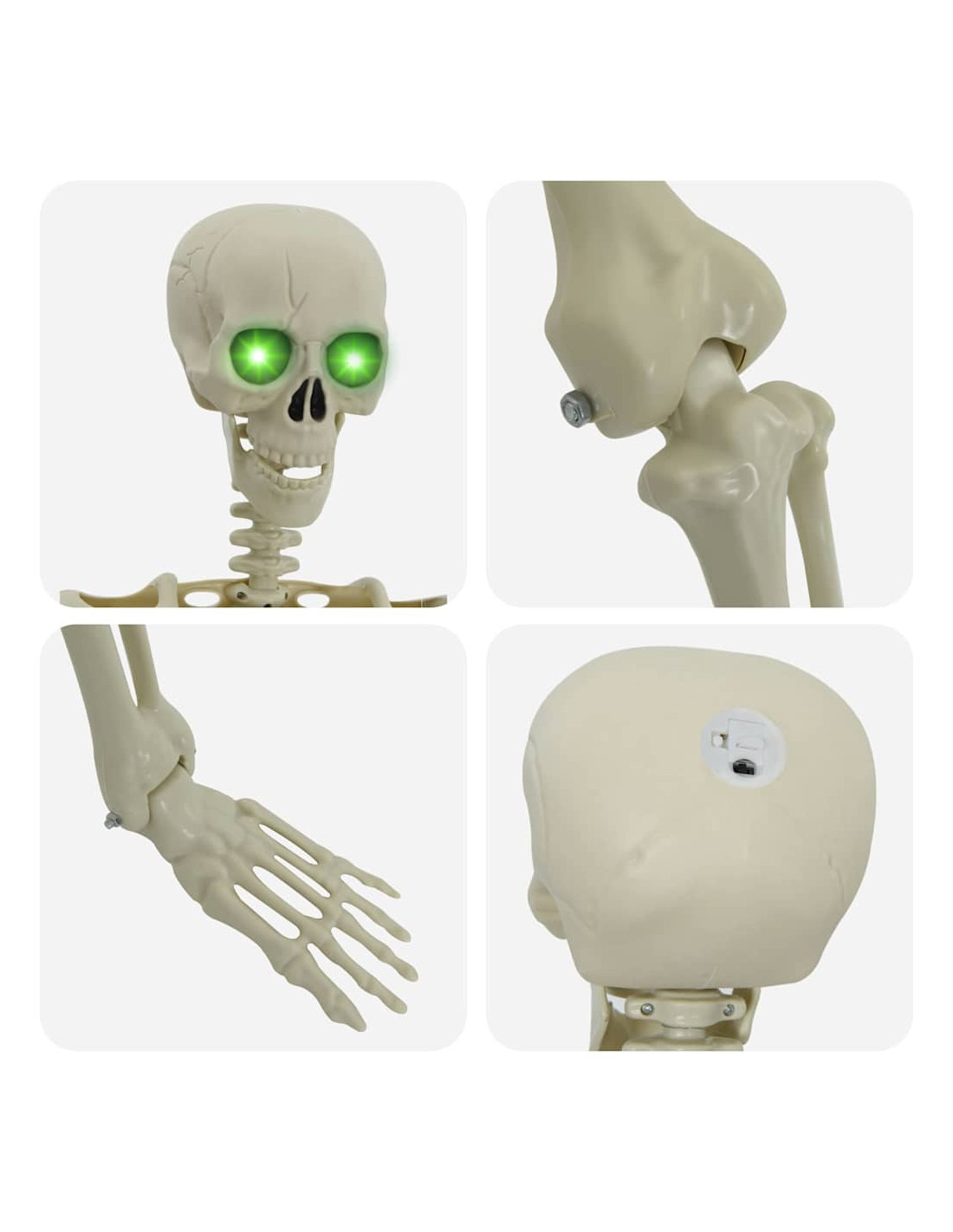 - Regolazione Manuale: Questo scheletro ti permette di posarlo come preferisci, dandoti la libertà di cambiare il suo aspetto per diverse storie di Halloween. Sfoggialo come vuoi!