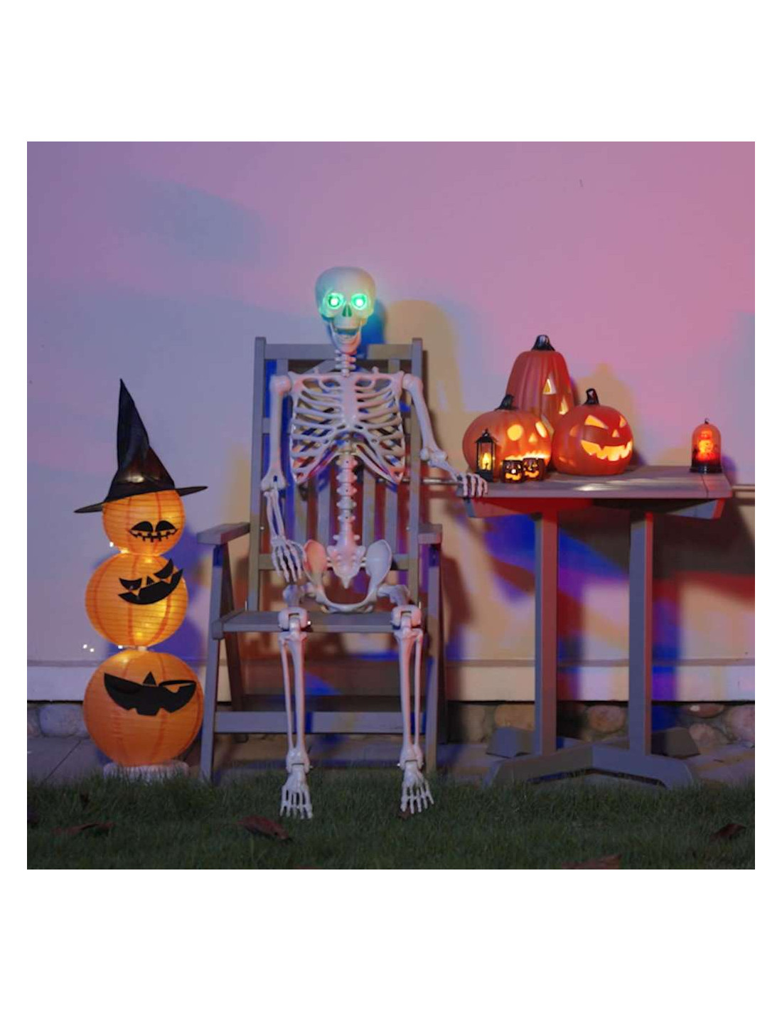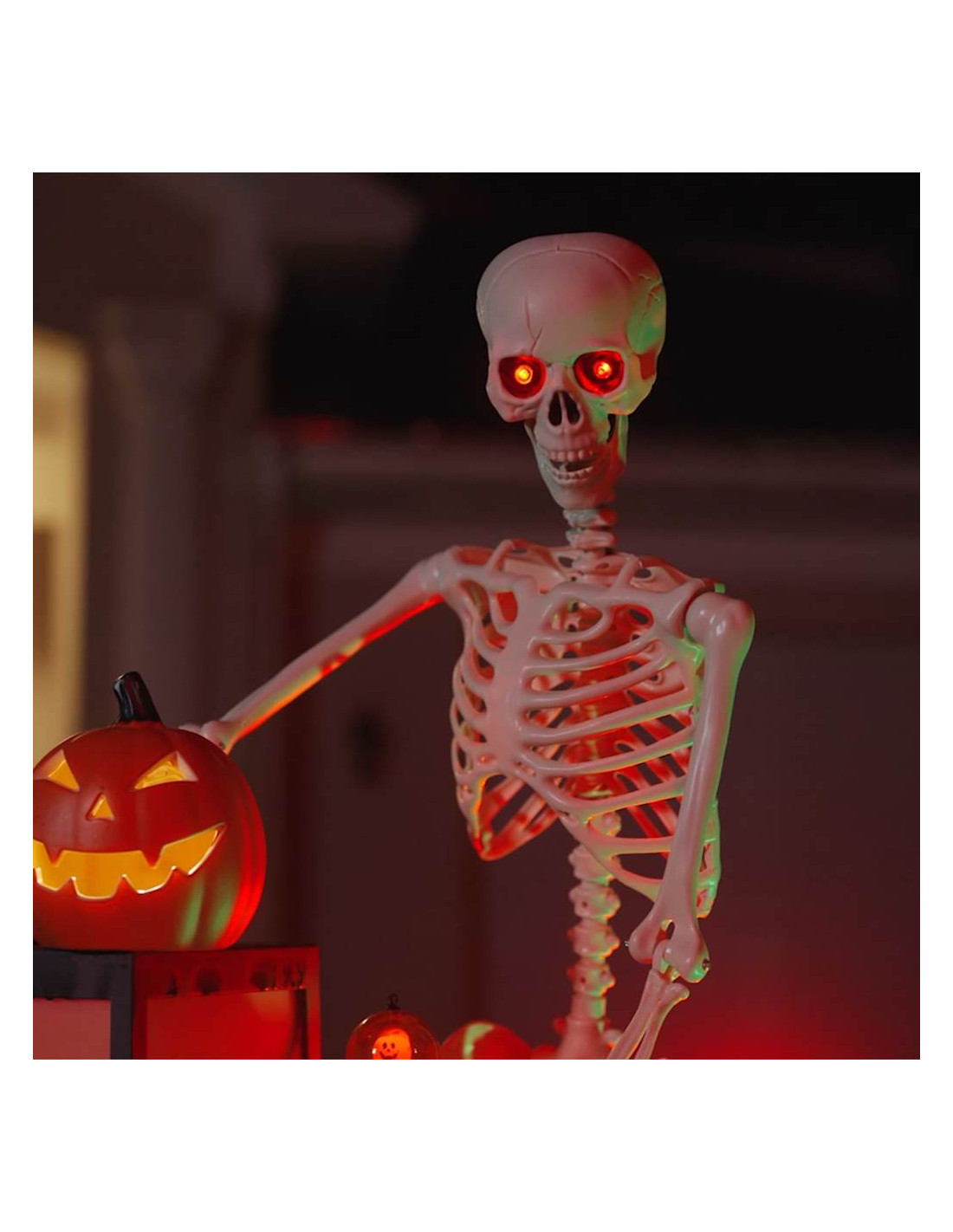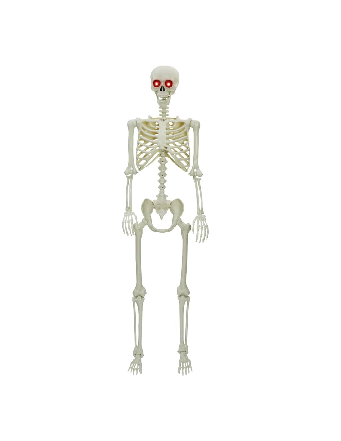 - Luci LED Brillanti: Con luci LED in tonalità rosse e verdi, lo scheletro emana un bagliore ultraterreno che aumenta il fattore terrore. Usalo per mettere in evidenza angoli bui o come pezzo da mostra per ravvivare il tuo allestimento di Halloween.
