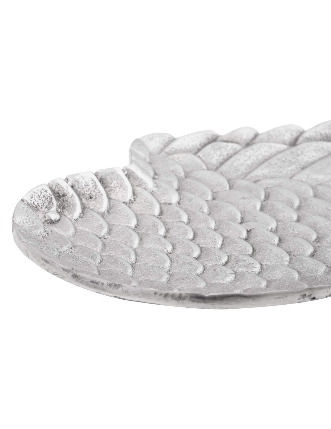 Questo cestino in alluminio per frutta è un pezzo decorativo unico, progettato per rendere speciale il tuo soggiorno. Con la sua finitura lucida e la superficie liscia, ha un aspetto elegante e moderno, perfetto come centro tavola su un tavolino o un buffet. La forma a ali è impreziosita da intarsi, dando un tocco di raffinatezza al design. Creato per l'uso interno, unisce funzionalità e stile, integrandosi bene in ambienti moderni.