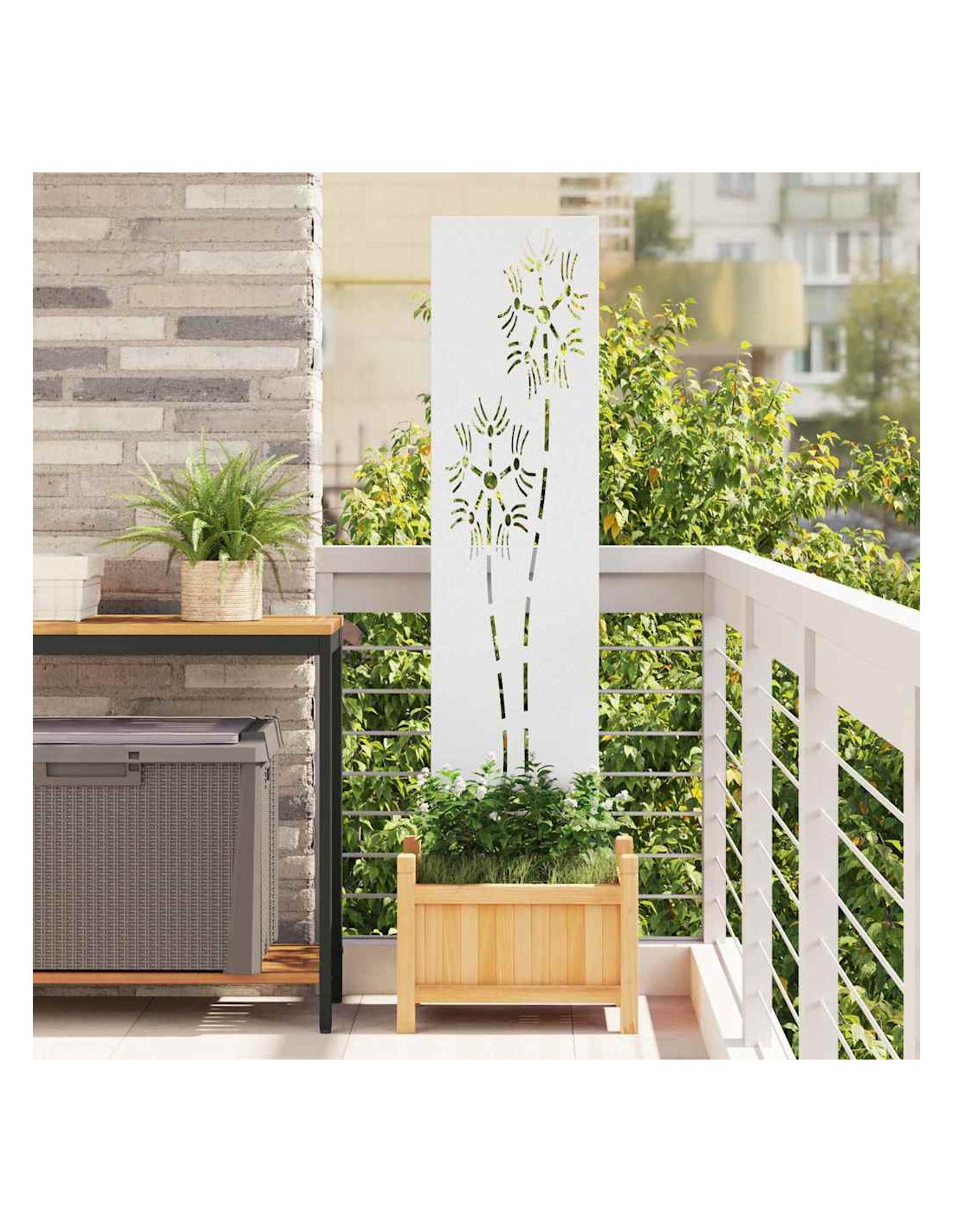 - Funzionalità: Con la sua forma rettangolare e la struttura robusta, lo schermo riempie perfettamente il ruolo di separatore decorativo e schermo per la privacy all'aperto. È fondamentale per creare un'atmosfera intima in giardini e terrazze, permettendo di godere a pieno dello spazio.