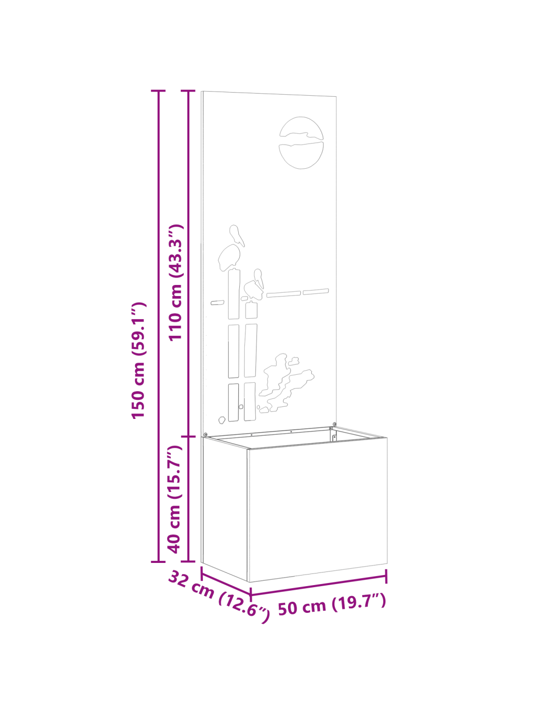 - Dimensioni complessive: 50 x 32 x 150 cm (L x P x A)