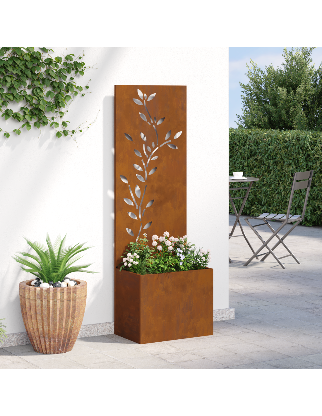 - Costruzione in Acciaio Robustissimo Fatto in acciaio resistente, questo pannello da giardino è super robusto e perfetto per l'esterno. La scelta dell'acciaio assicura che sia in grado di affrontare tutte le condizioni atmosferiche, offrendo anni di privacy e decorazione.