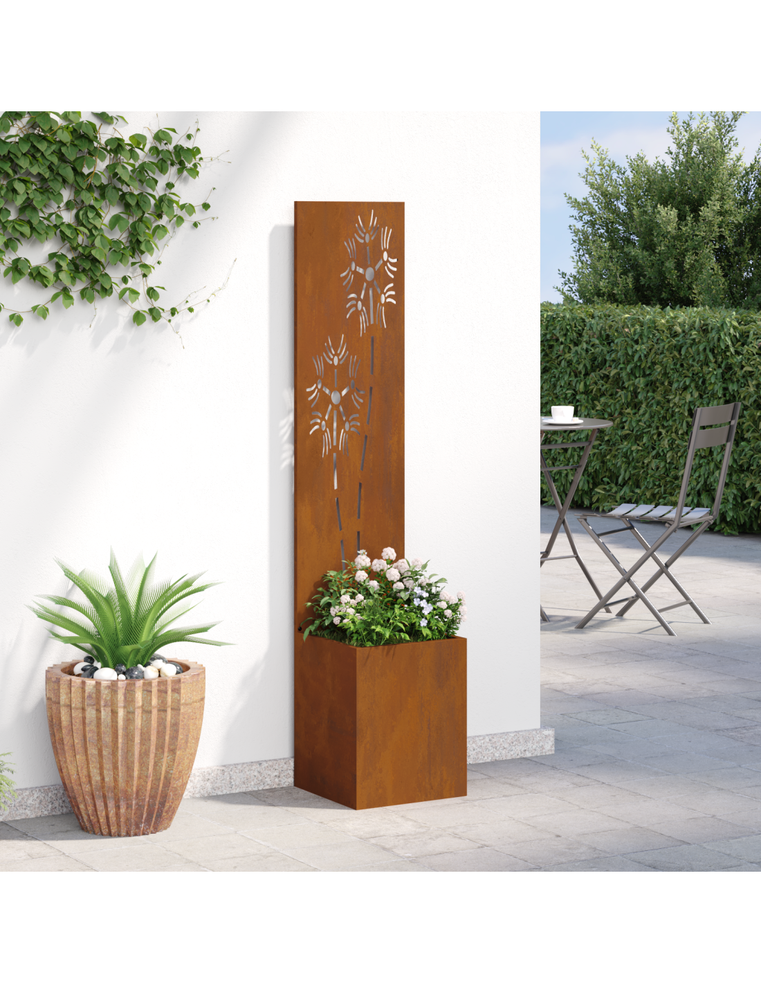 - Costruzione in Acciaio Robustissimo Fatto in acciaio resistente, questo pannello da giardino è super robusto e perfetto per l'esterno. La scelta dell'acciaio assicura che sia in grado di affrontare tutte le condizioni atmosferiche, offrendo anni di privacy e decorazione.