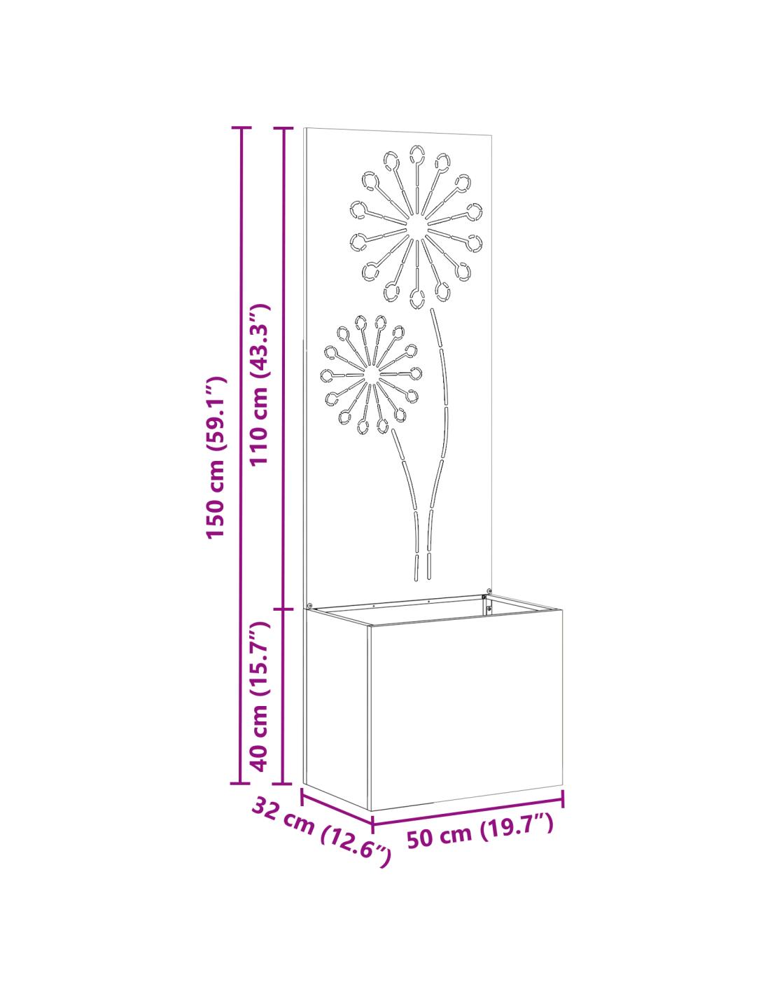 - Costruzione in Acciaio Robustissimo Fatto in acciaio resistente, questo pannello da giardino è super robusto e perfetto per l'esterno. La scelta dell'acciaio assicura che sia in grado di affrontare tutte le condizioni atmosferiche, offrendo anni di privacy e decorazione.