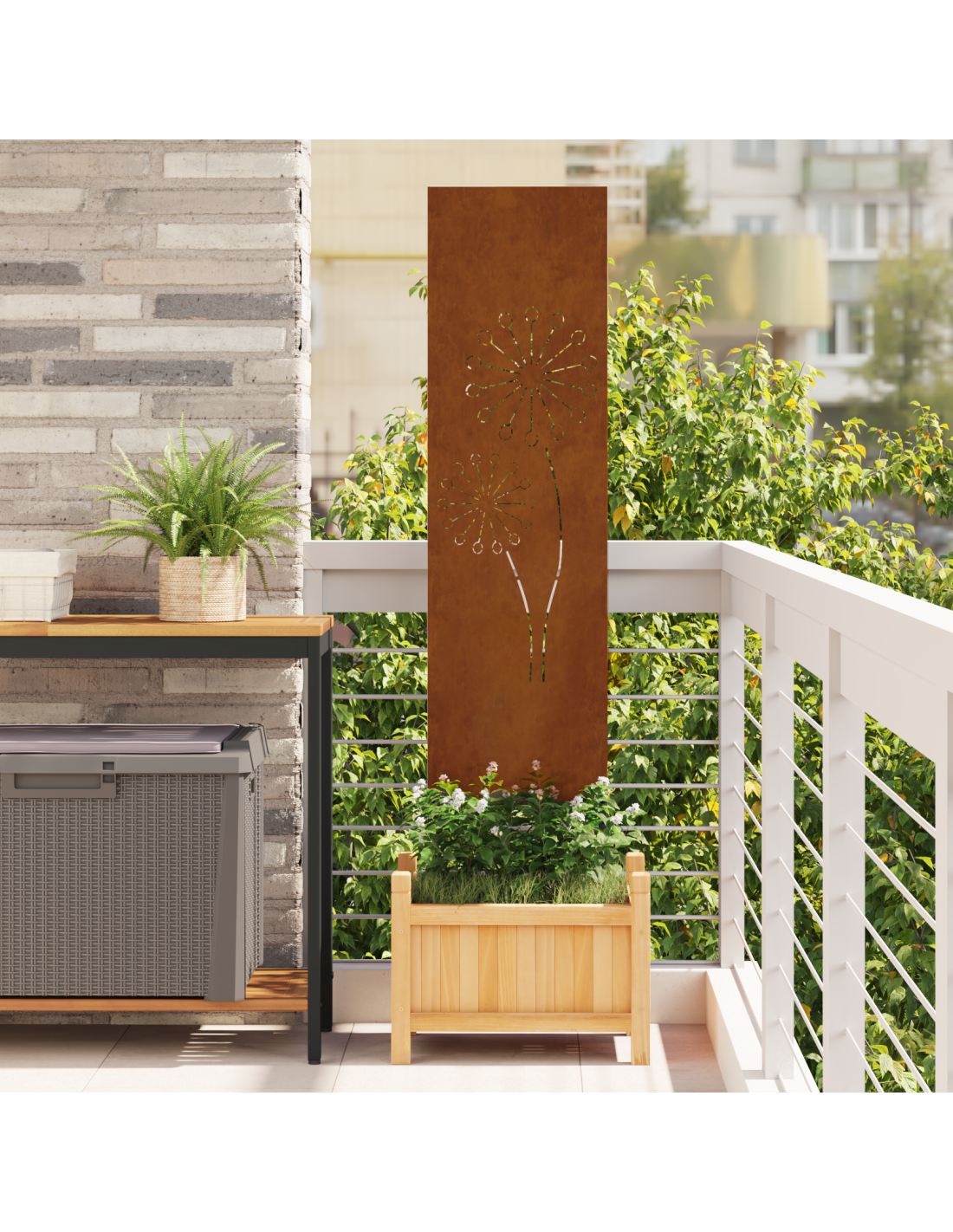 - Funzionalità: Con la sua forma rettangolare e la struttura robusta, lo schermo riempie perfettamente il ruolo di separatore decorativo e schermo per la privacy all'aperto. È fondamentale per creare un'atmosfera intima in giardini e terrazze, permettendo di godere a pieno dello spazio.