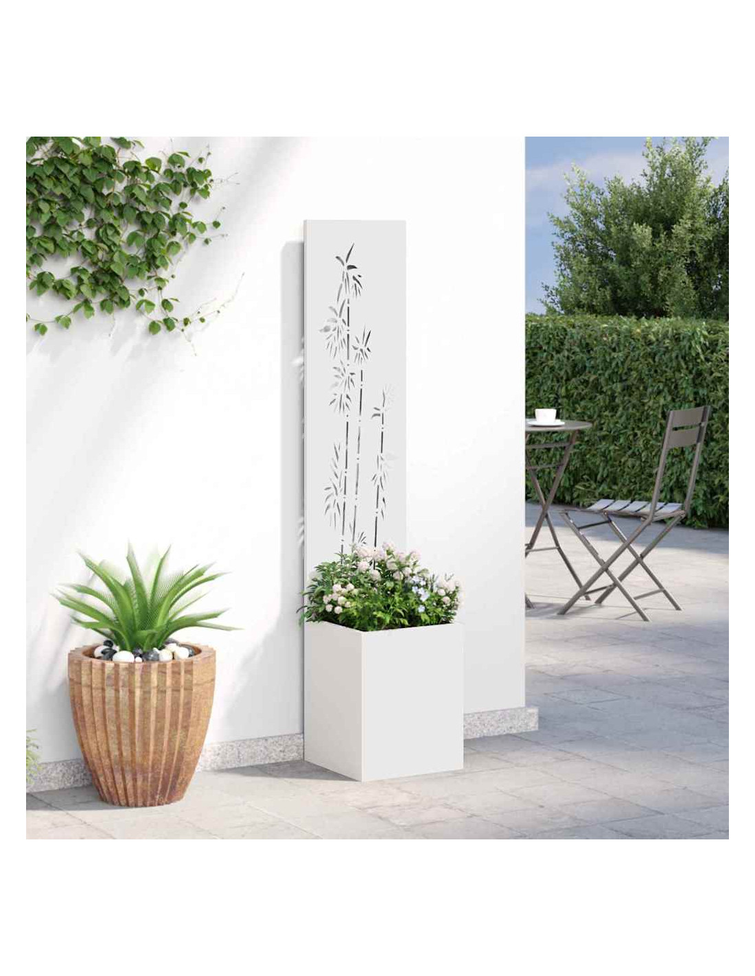 - Costruzione in Acciaio Robustissimo Fatto in acciaio resistente, questo pannello da giardino è super robusto e perfetto per l'esterno. La scelta dell'acciaio assicura che sia in grado di affrontare tutte le condizioni atmosferiche, offrendo anni di privacy e decorazione.